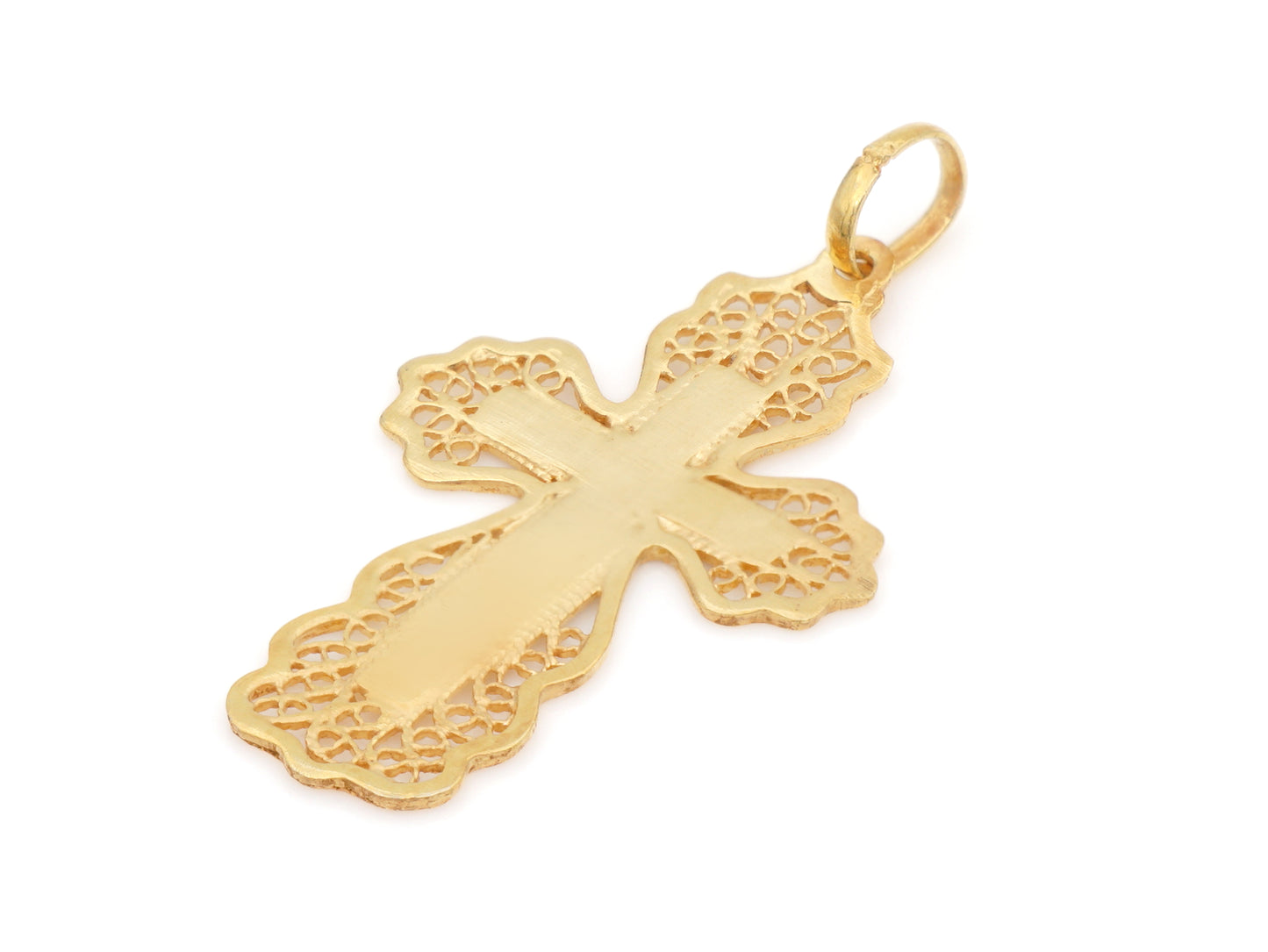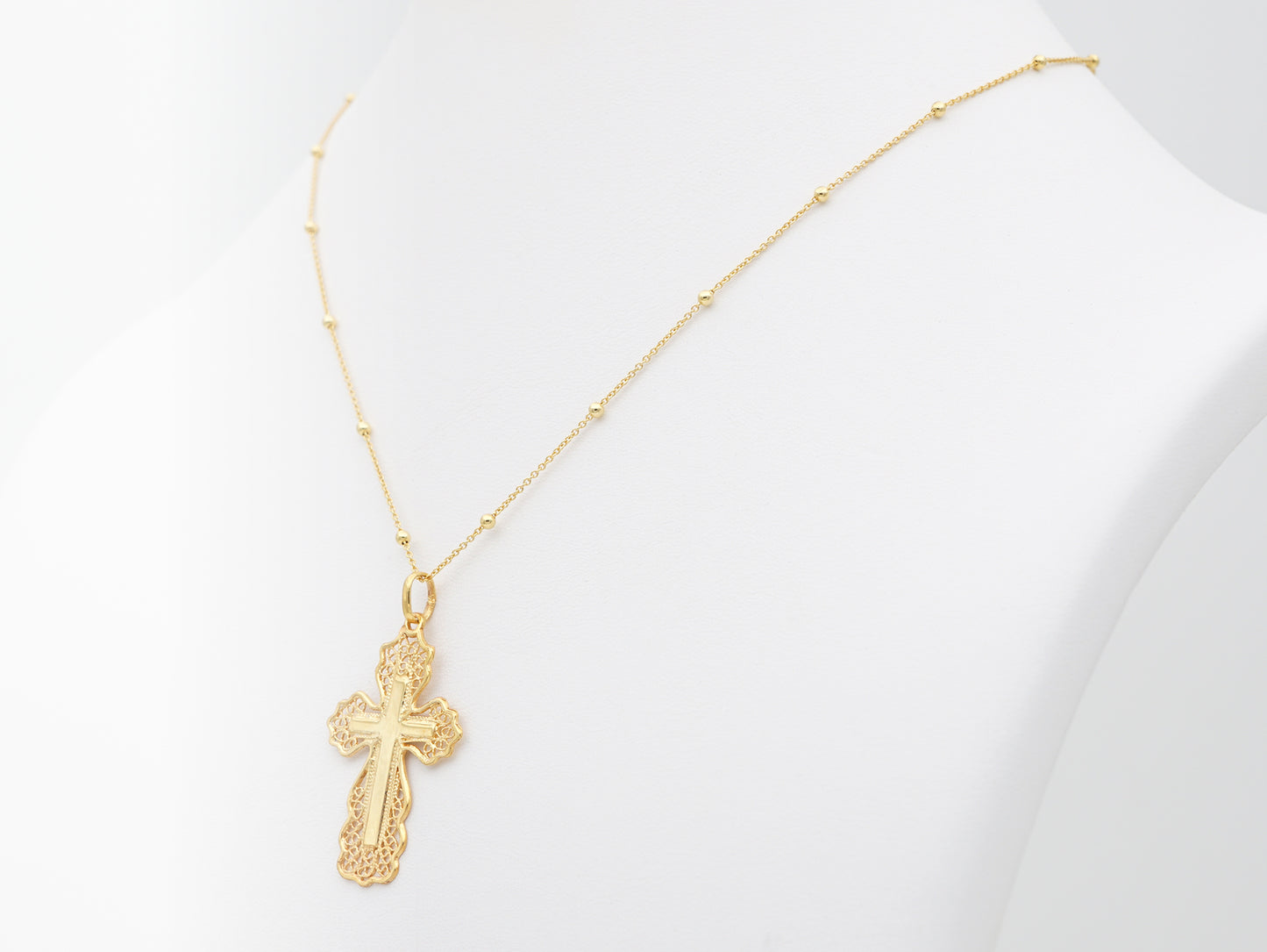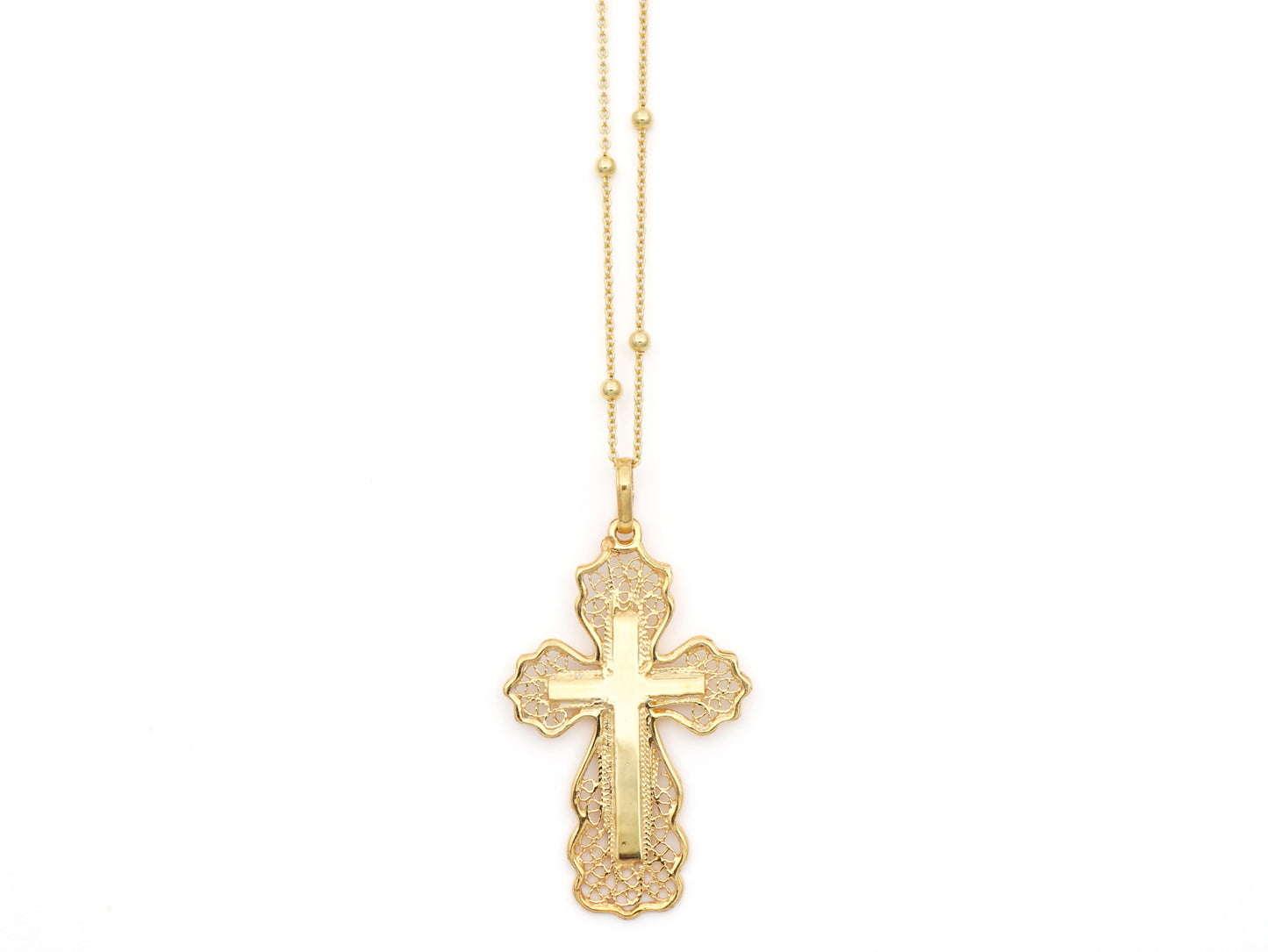 Necklace with Mirrored Cross, Portuguese Filigree, Golden 925 Sterling Silver