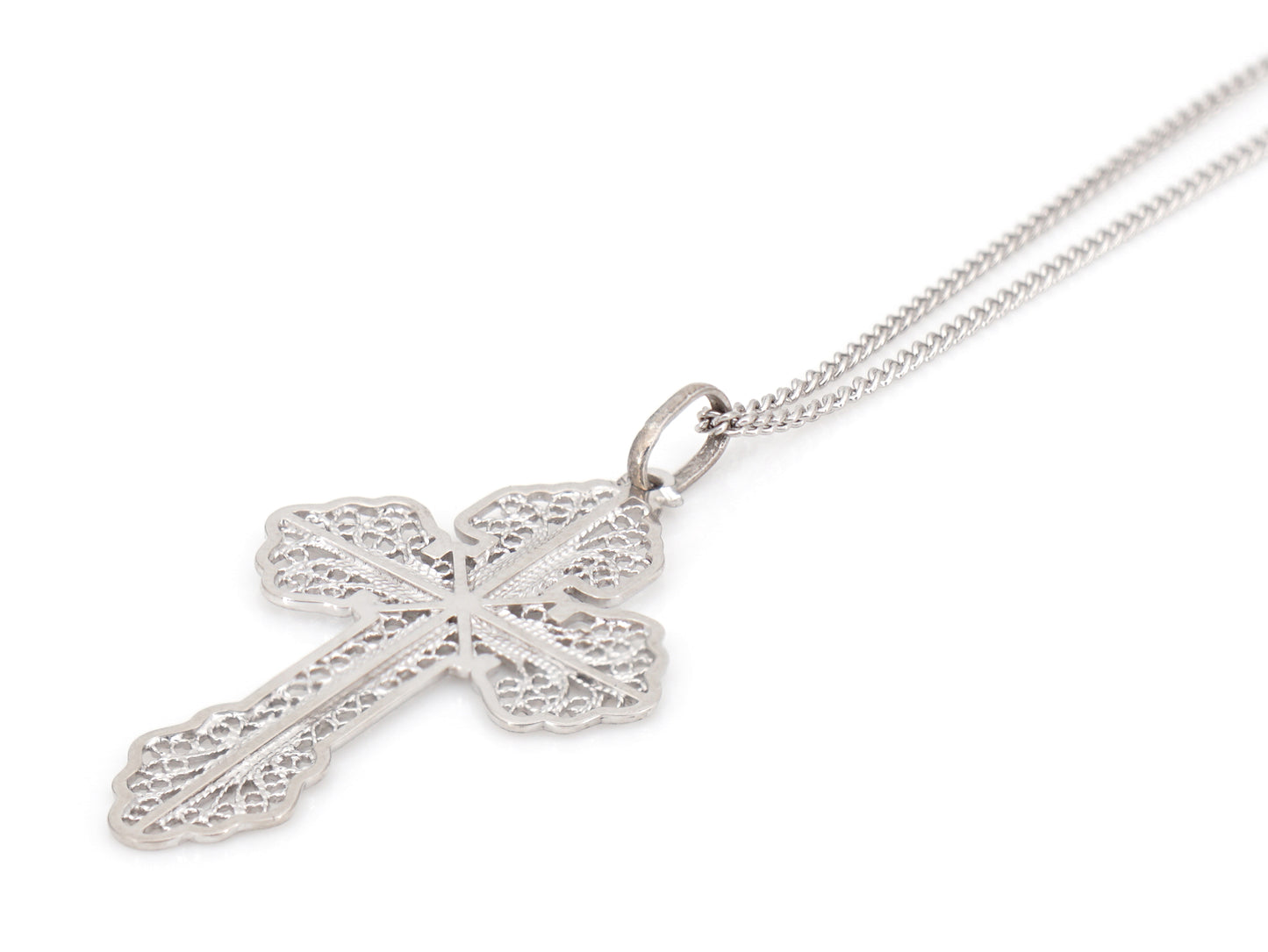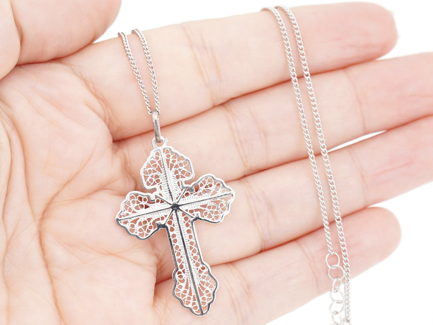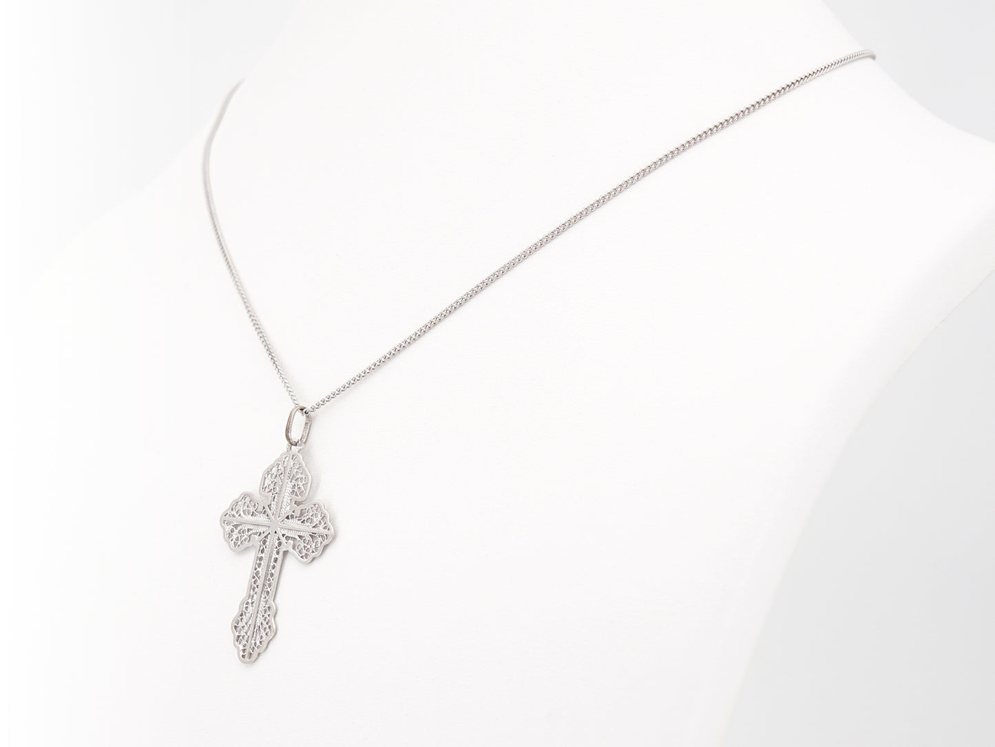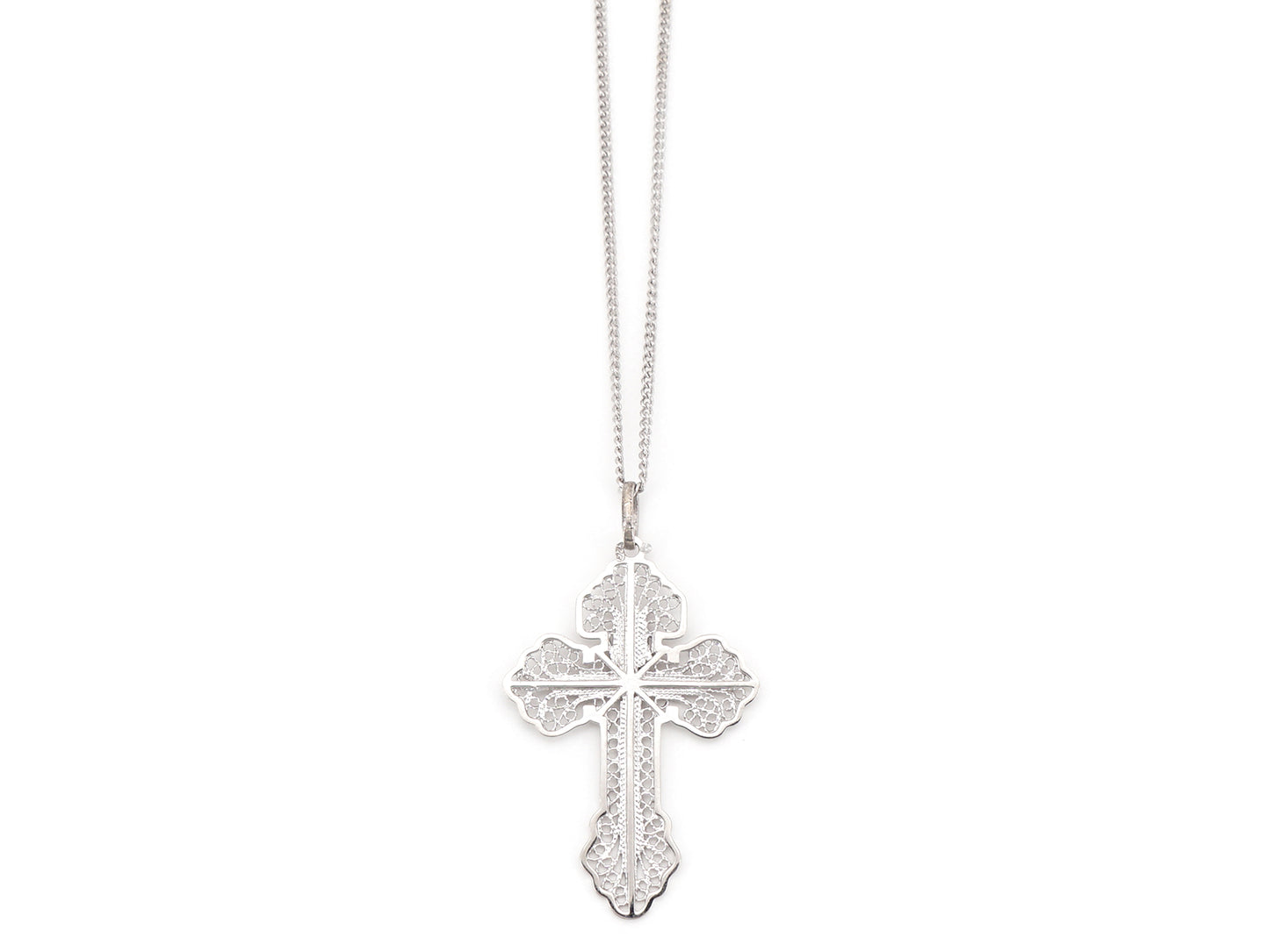 Necklace with Rounded Cross, Portuguese Filigree, 925 Sterling Silver