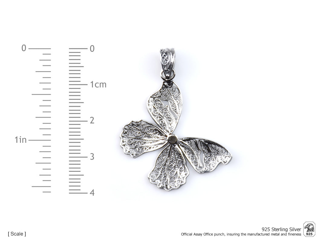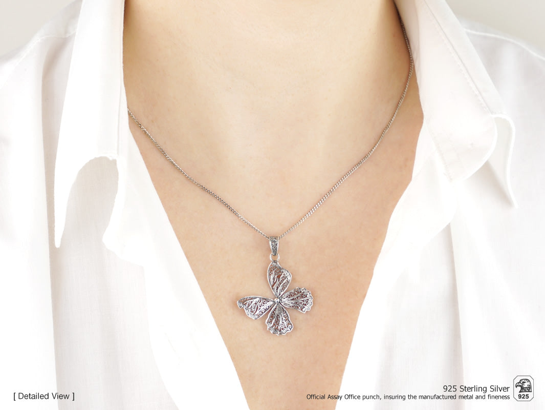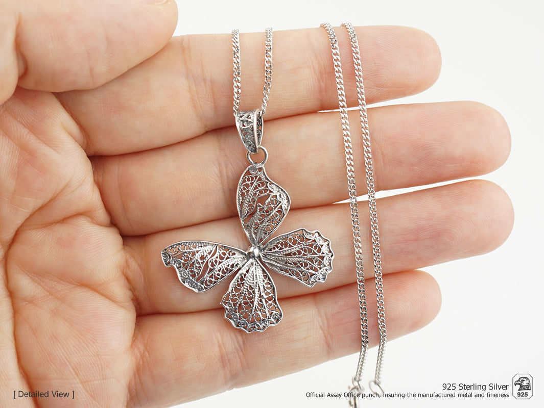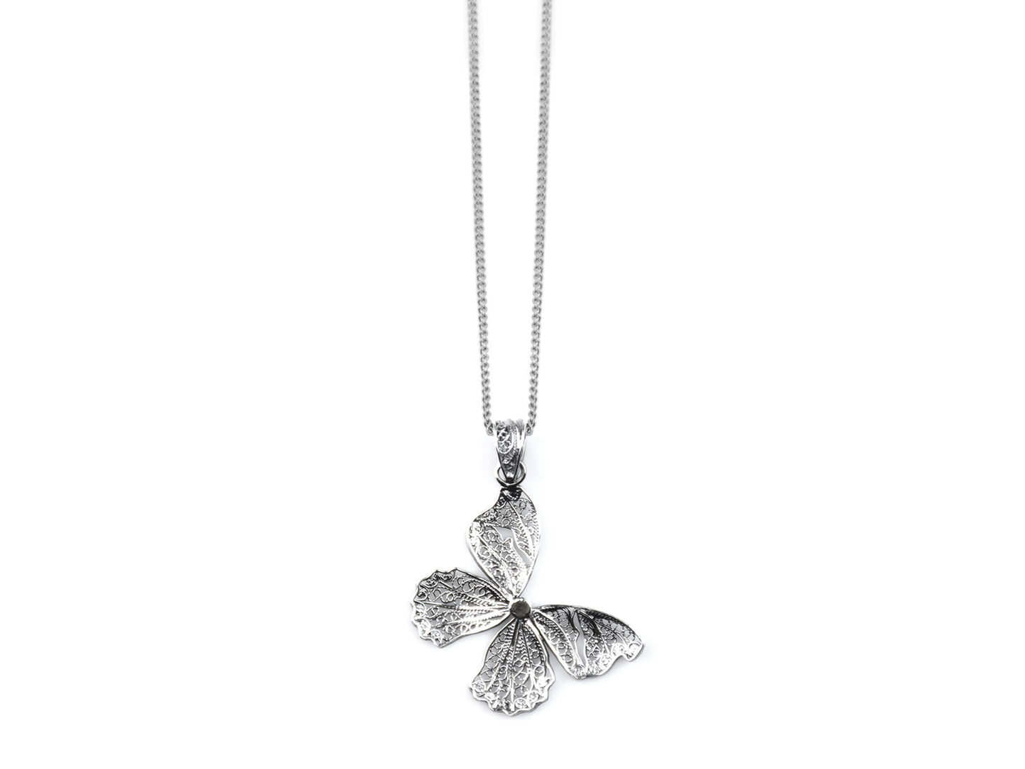Necklace with Butterfly, Portuguese Filigree, 925 Sterling Silver