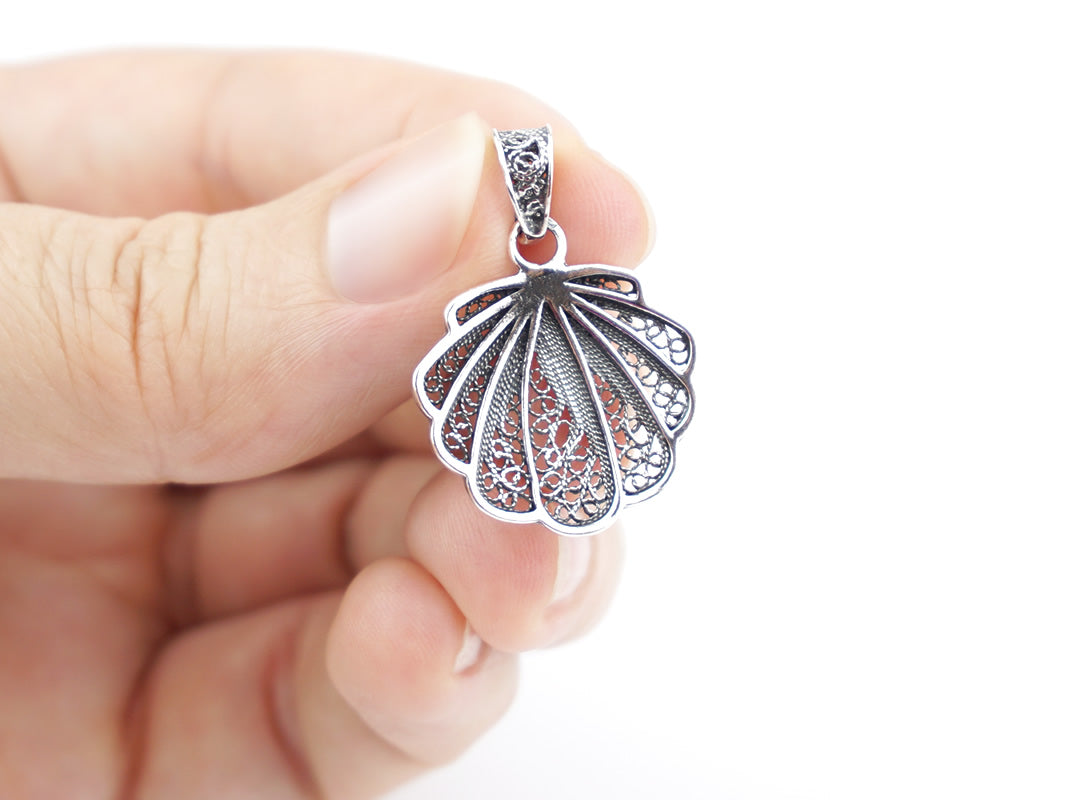 Seashell Pendant, Portuguese Filigree, 925 Sterling Silver