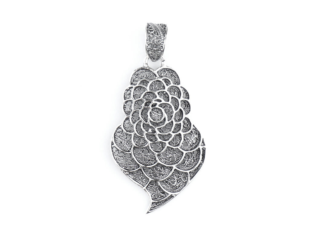 Elegant Small Petals Heart Pendant. Portuguese Filigree, crafted in Portugal in 925 Sterling Silver.