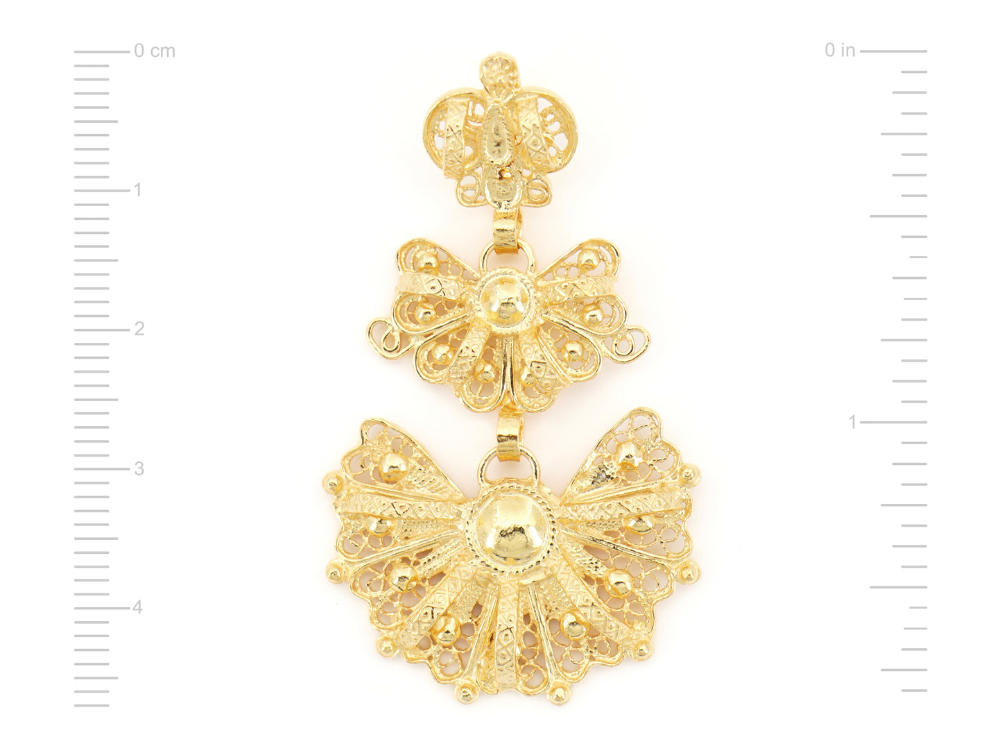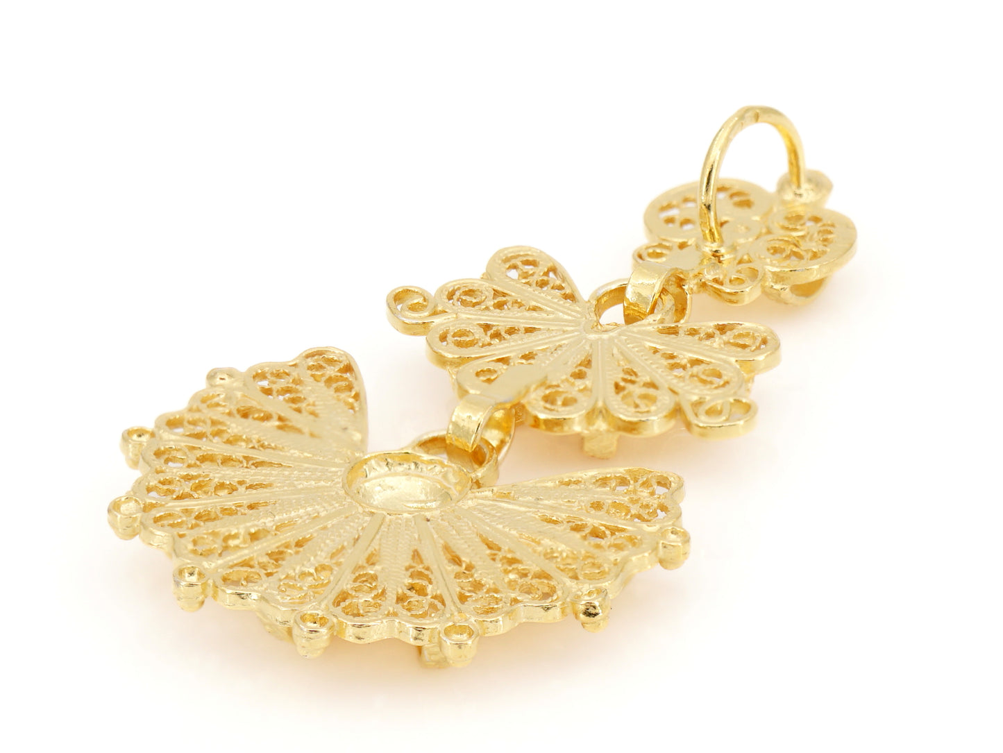 Elegant medium-sized Laça or Galician Pendant. Portuguese Filigree, crafted in Portugal in Golden 925 Sterling Silver.