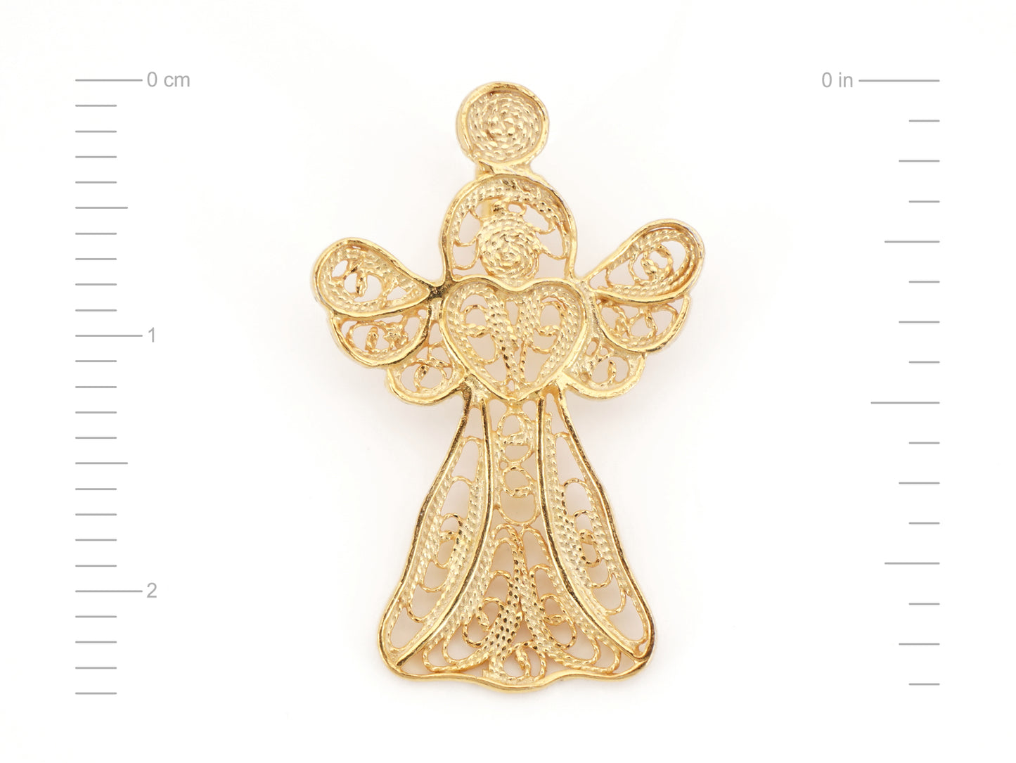 Angel Pendant, Portuguese Filigree, Golden 925 Sterling Silver