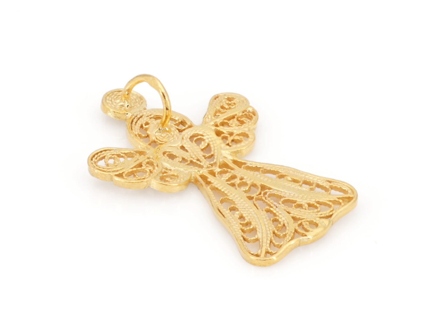 Elegant Angel Pendant. Portuguese Filigree, crafted in Portugal in Golden 925 Sterling Silver.