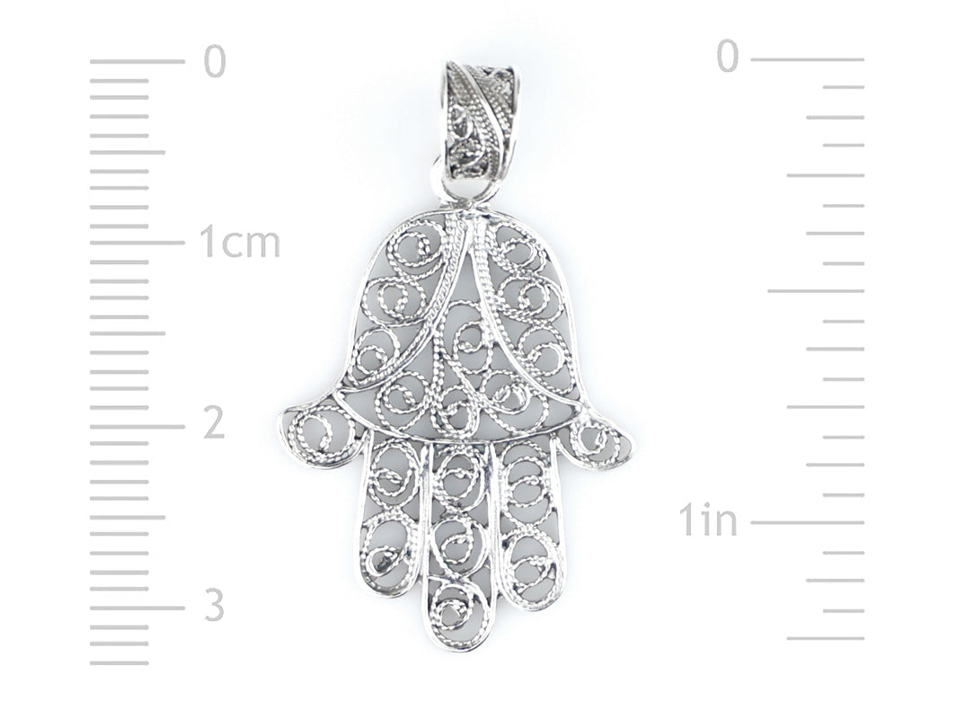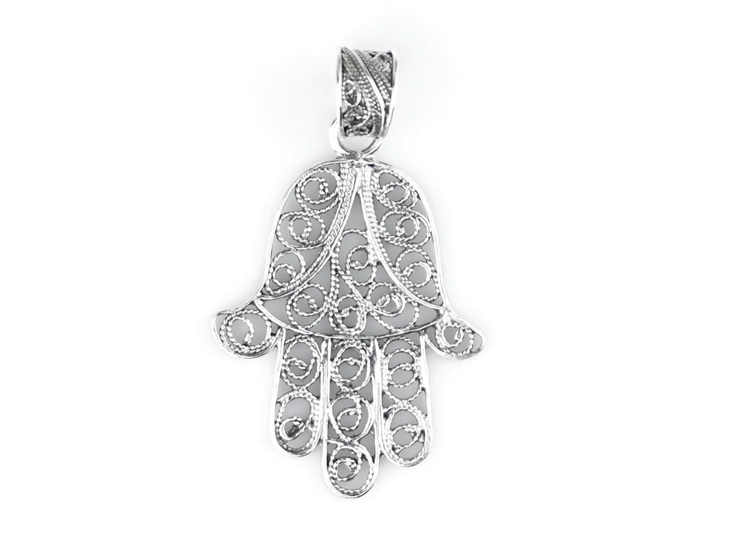 Medium Sized Hand of Fátima Pendant, Portuguese Filigree, 925 Sterling Silver