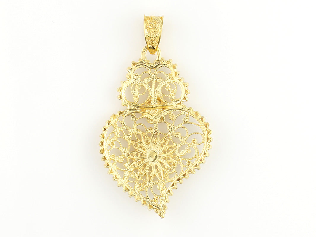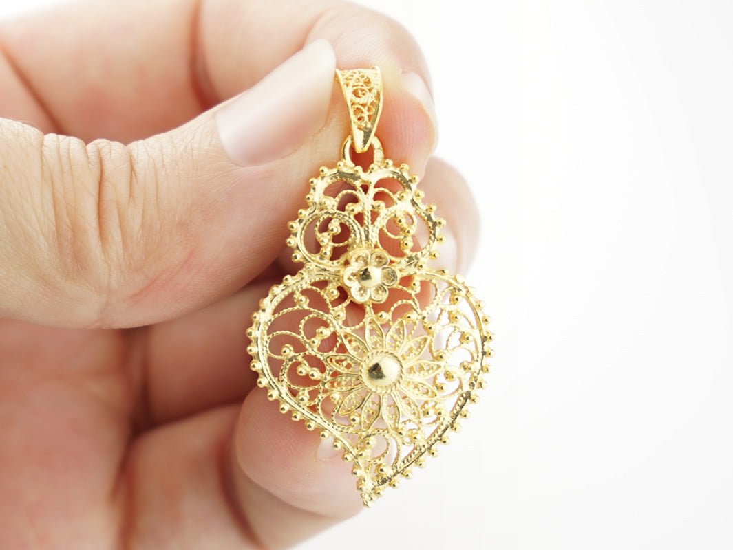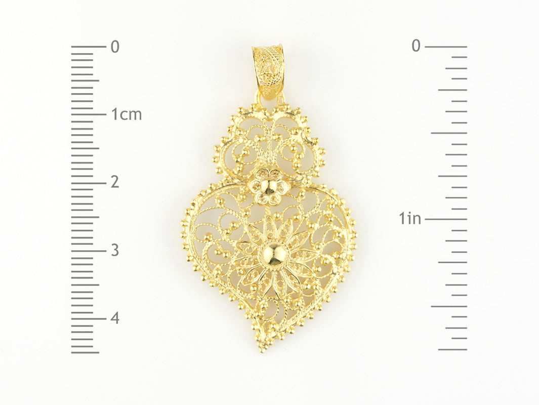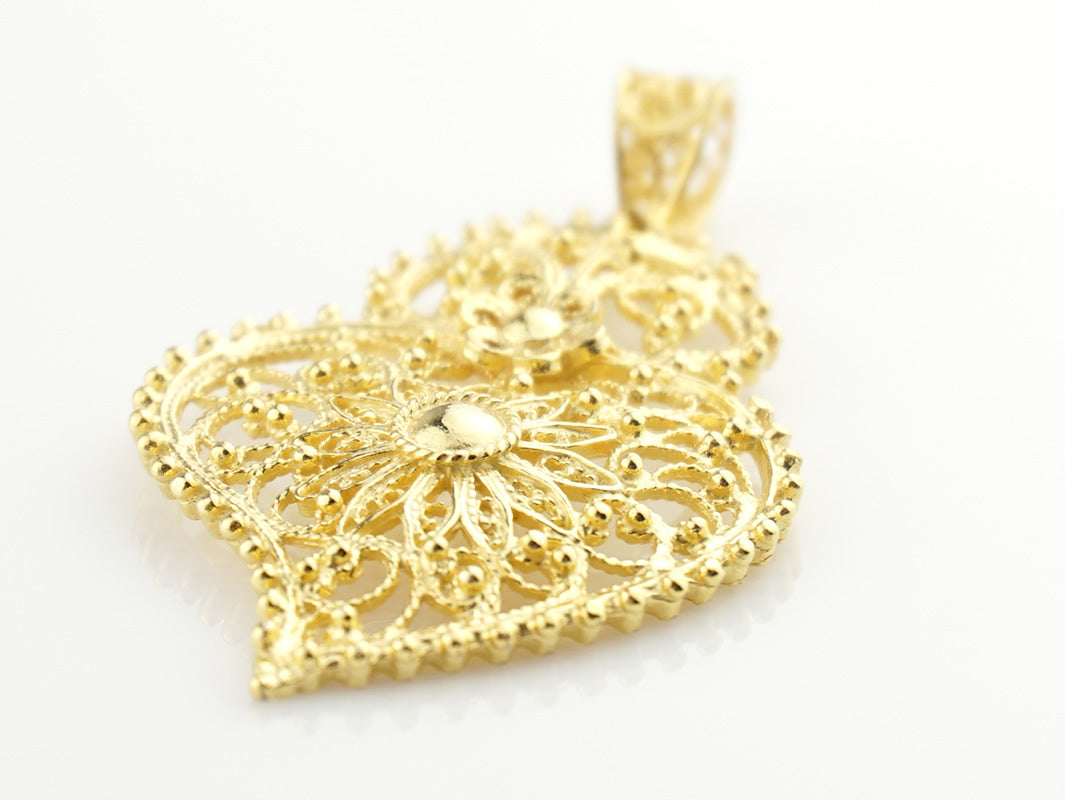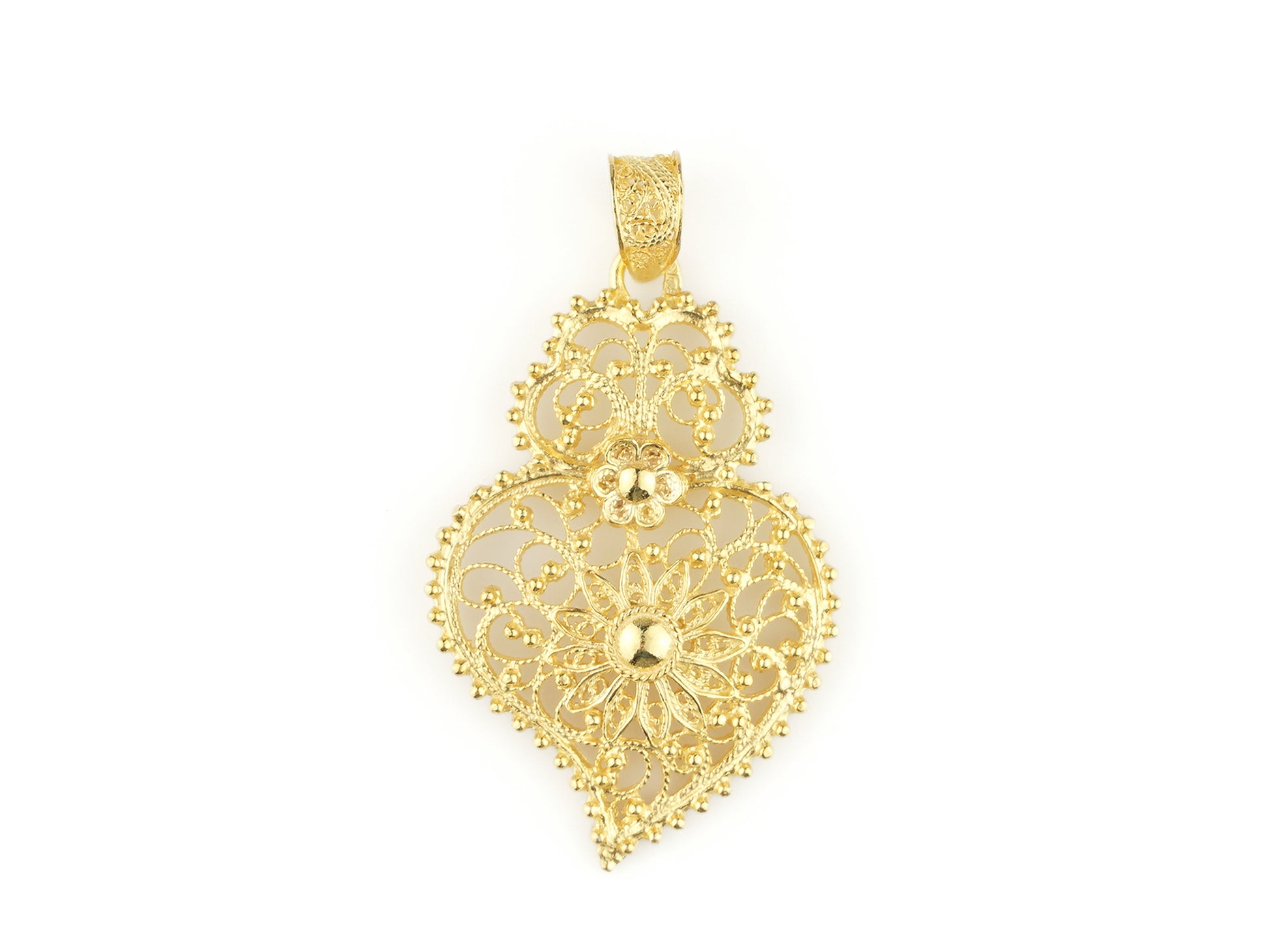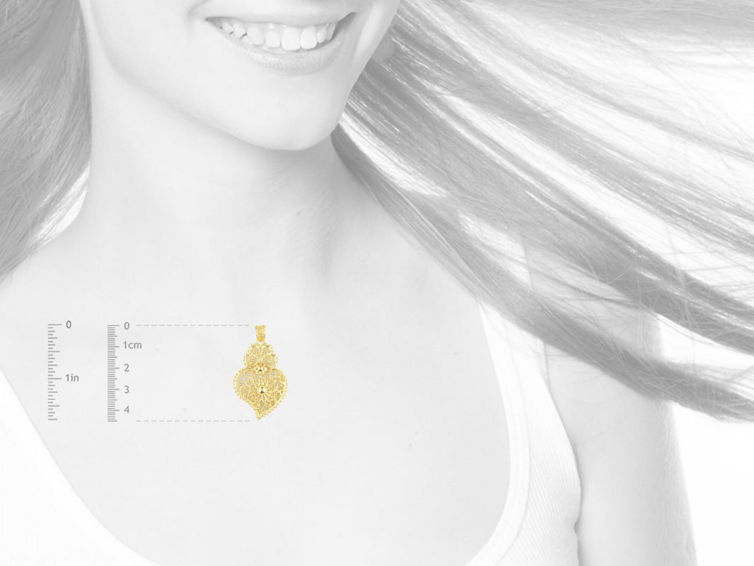 Elegant Fidalga Heart Pendant. Portuguese Filigree, crafted in Portugal in Golden 925 Sterling Silver.