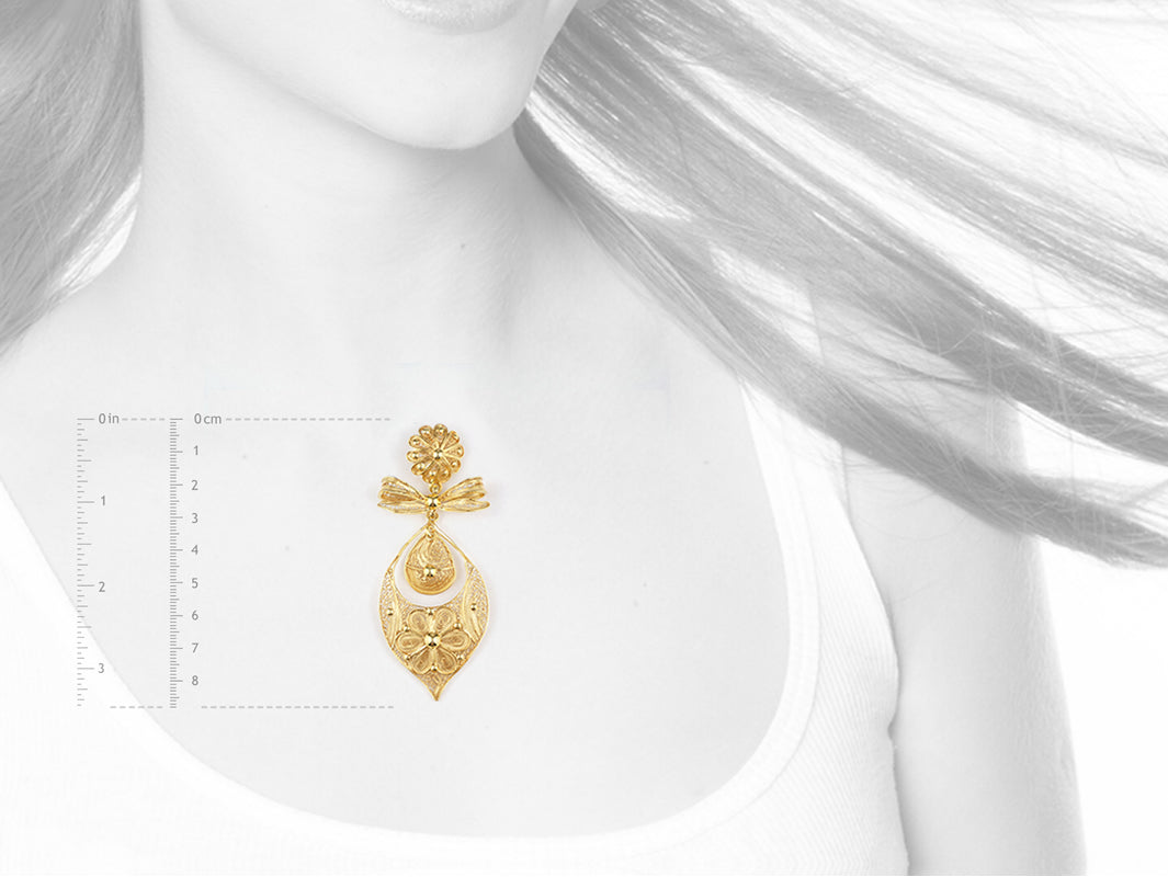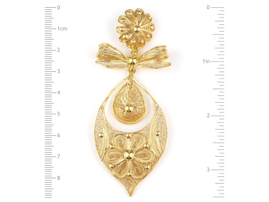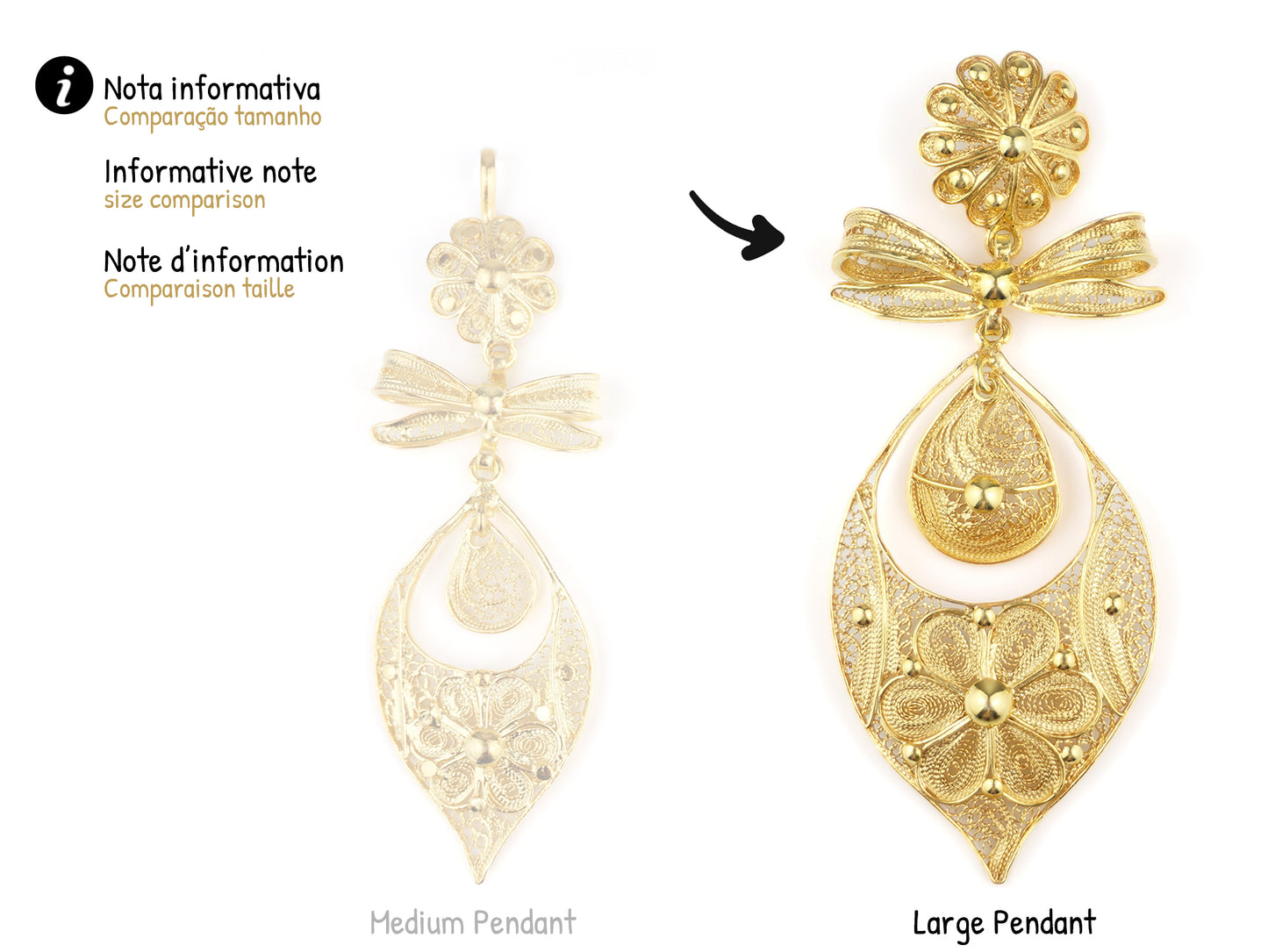 Elegant large size Rich Princess Pendant. Portuguese Filigree, crafted in Portugal in Golden 925 Sterling Silver.