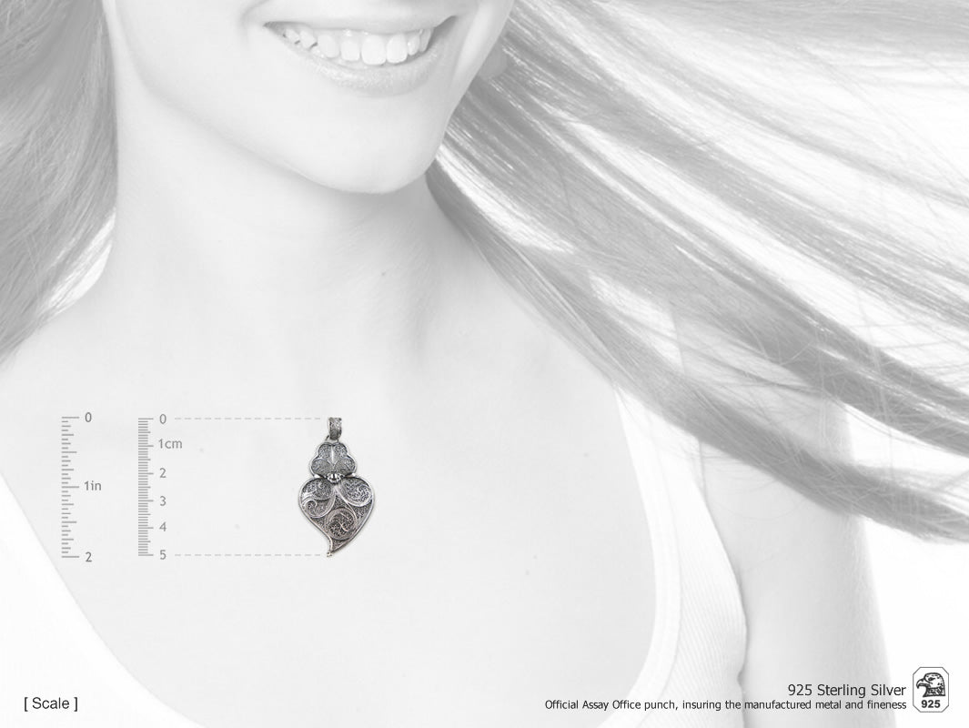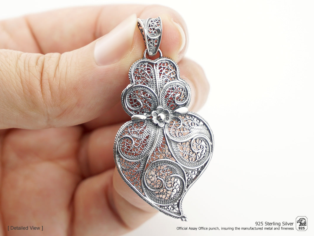 Elegant medium-sized Viana Heart Pendant. Portuguese Filigree, crafted in Portugal in 925 Sterling Silver.