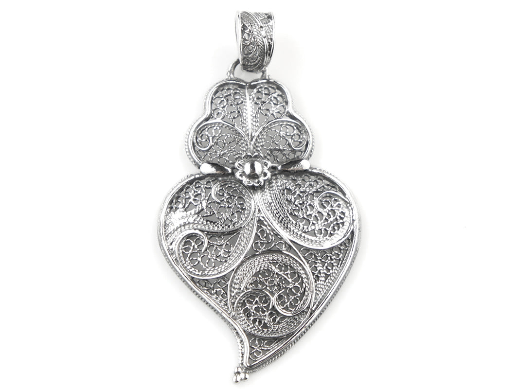Medium-sized Viana Heart Pendant, Portuguese Filigree, 925 Sterling Silver