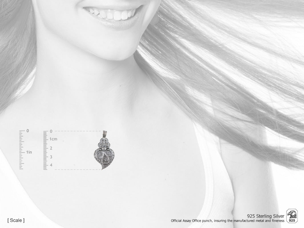 Elegant small-sized Framed Viana Heart Pendant, in Portuguese Filigree, crafted in Portugal in 925 Sterling Silver.