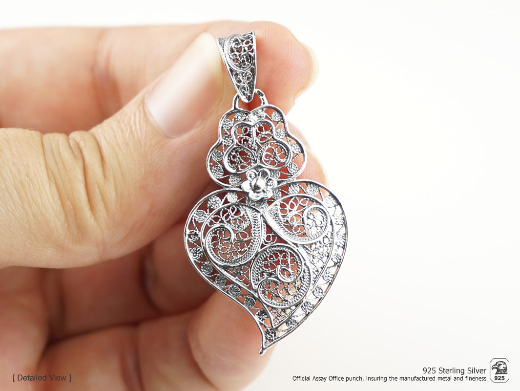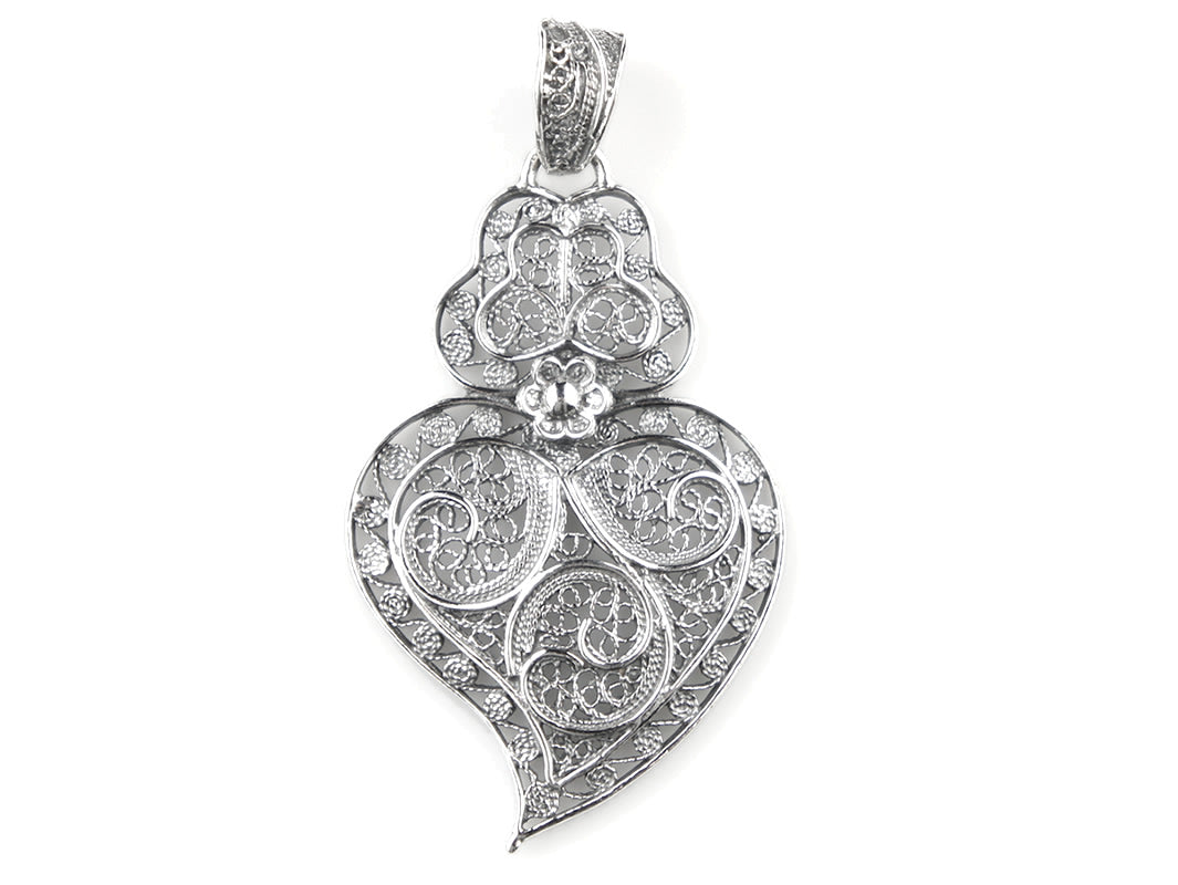 Small Framed Viana Heart Pendant, Portuguese Filigree, 925 Sterling Silver