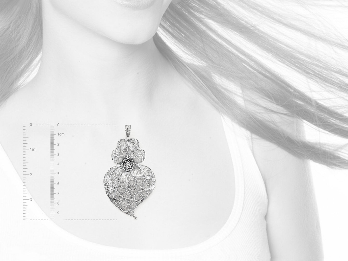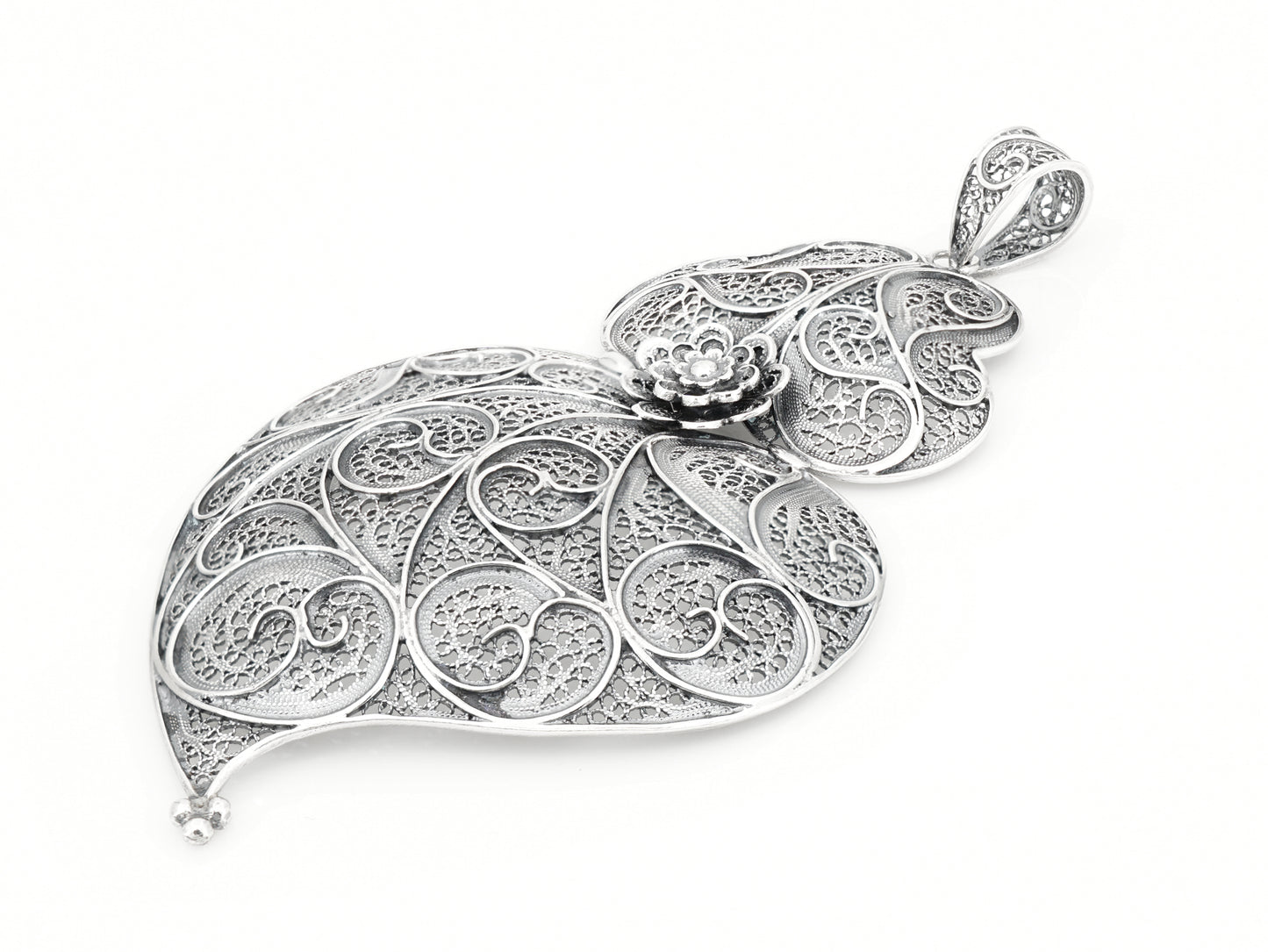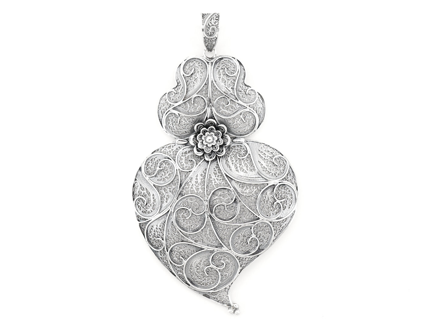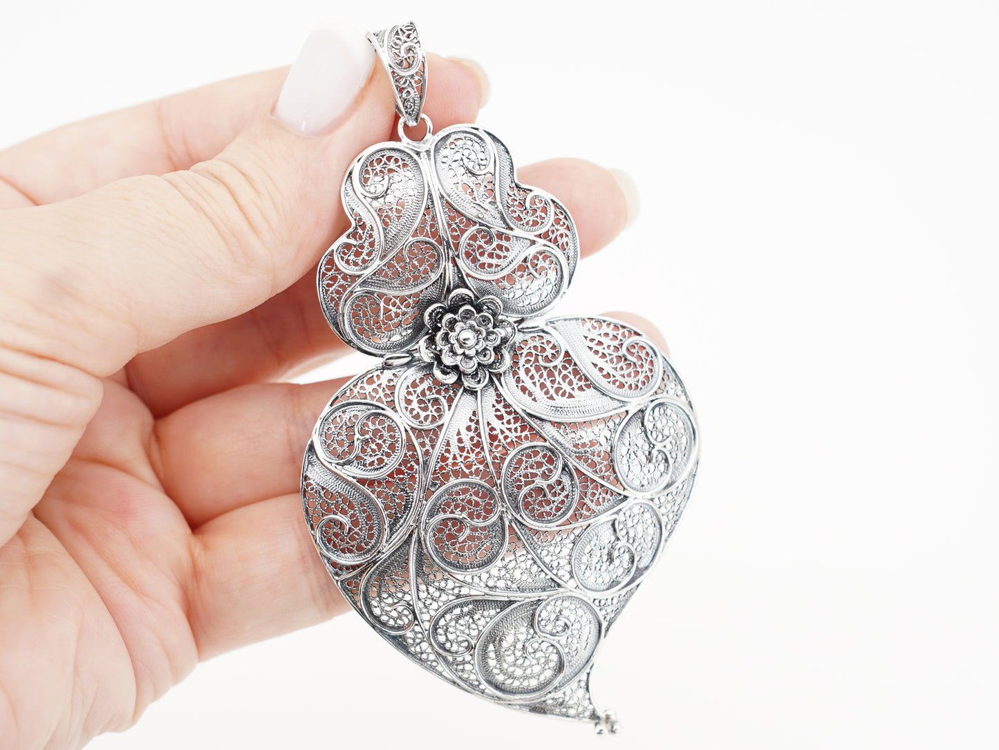 Large Traditional Heart Pendant, Portuguese Filigree, 925 Sterling Silver