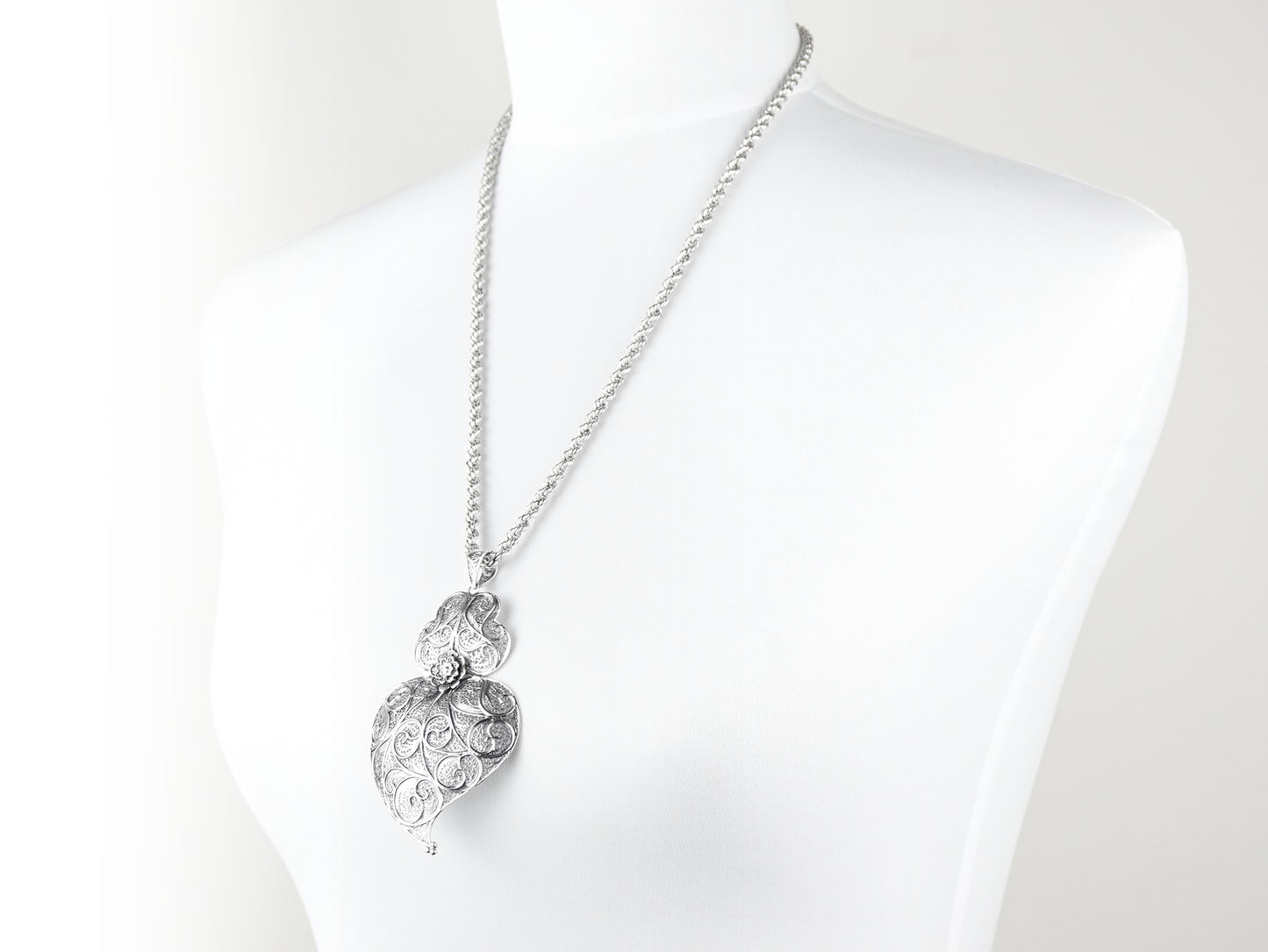 Twisted Necklace with Large Viana Heart, Portuguese Filigree, 925 Sterling Silver