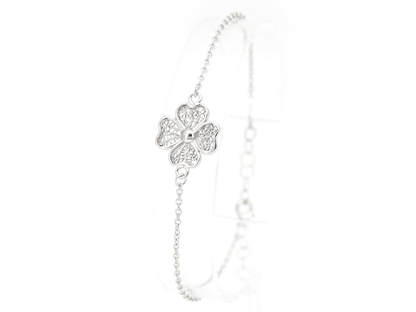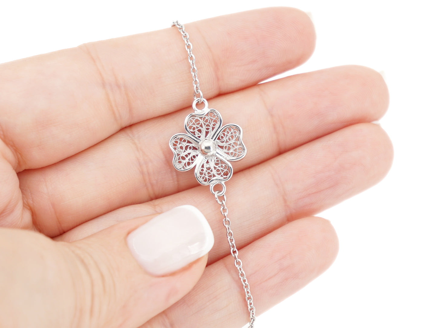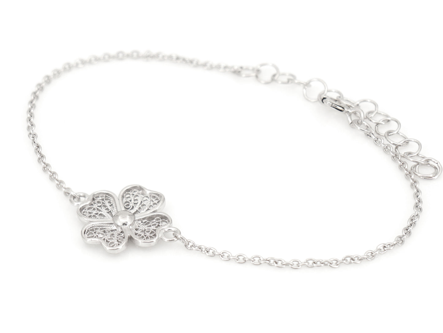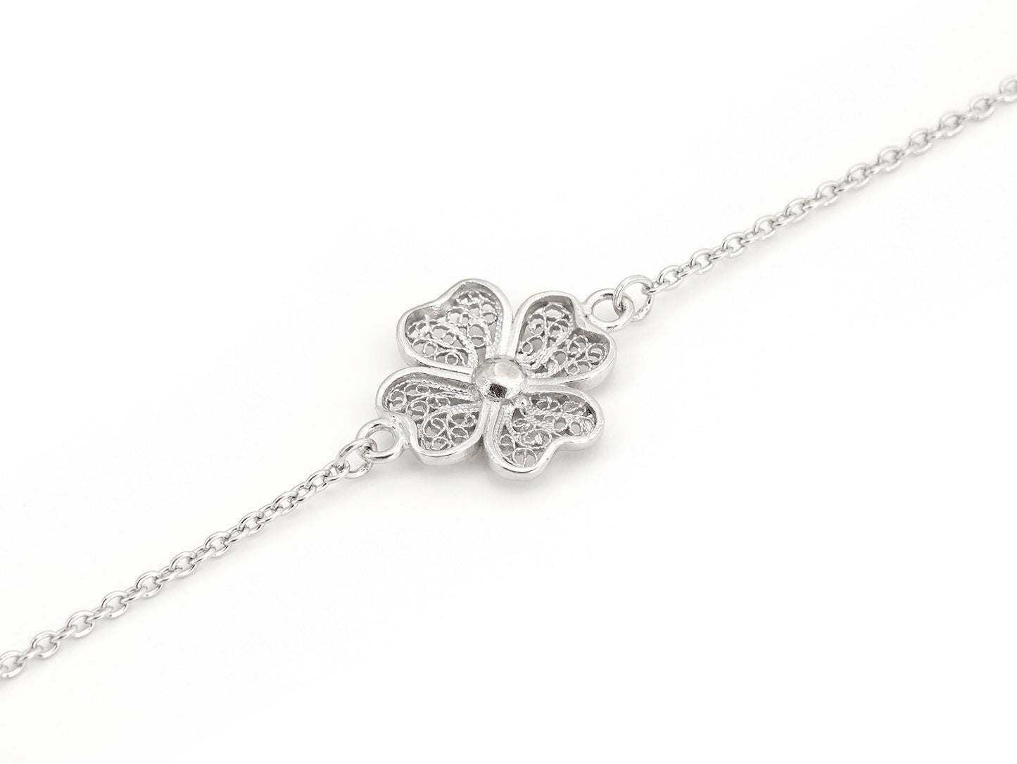Elegant Bracelet with Flower. Portuguese Filigree, crafted in Portugal in 925 Sterling Silver.
