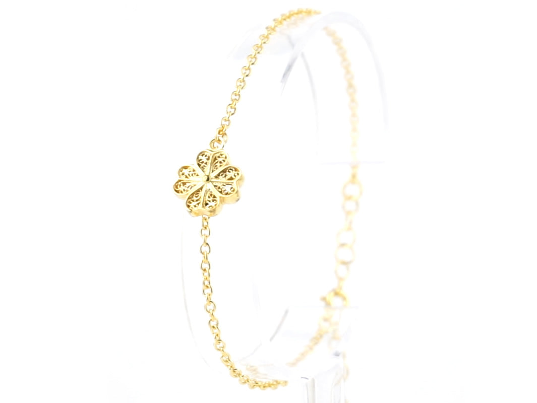 Bracelet with Clover, Portuguese Filigree, Golden 925 Sterling Silver