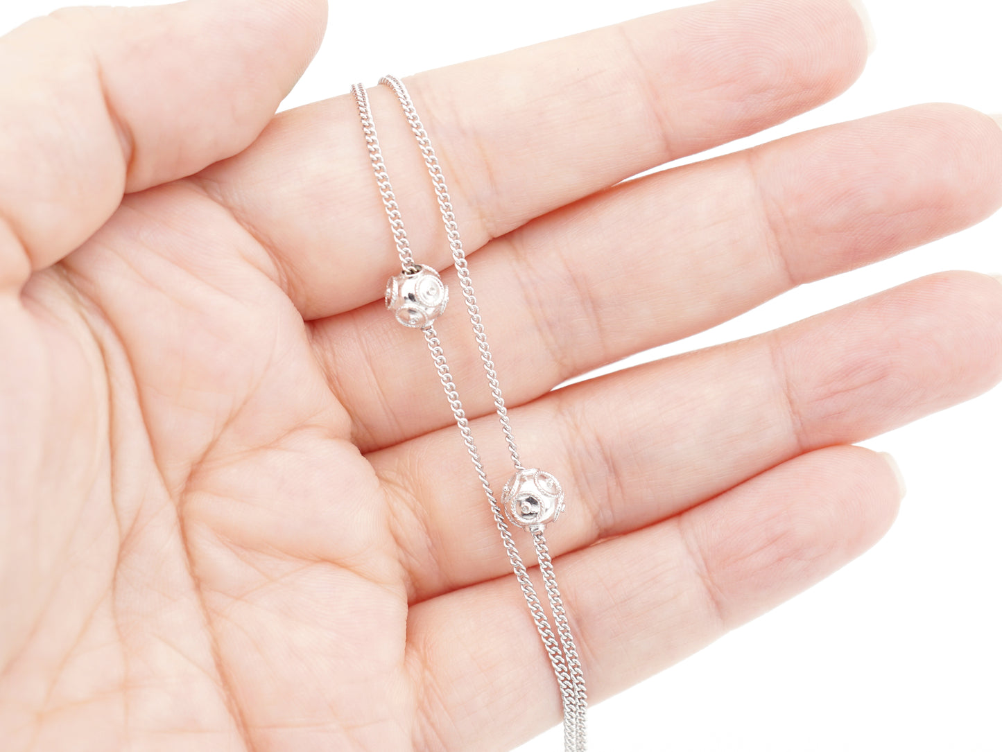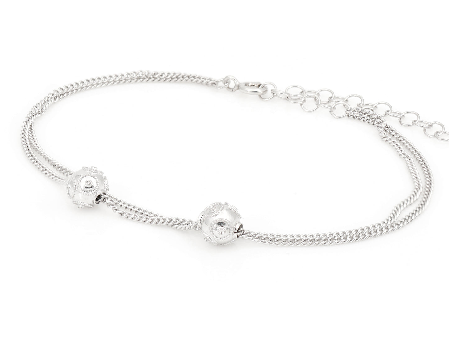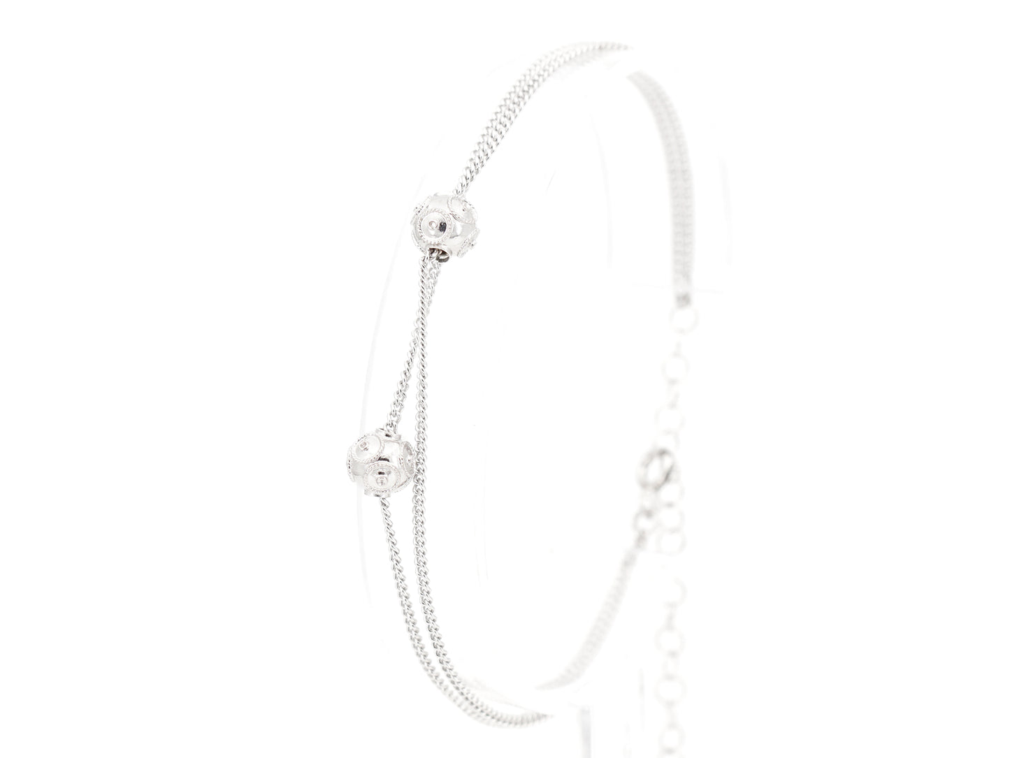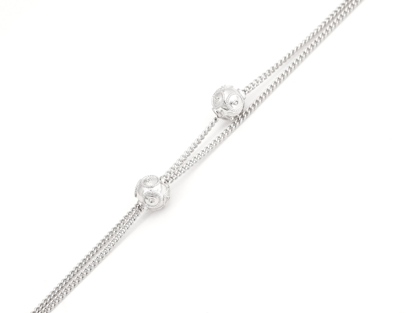 Elegant Bracelet with two small-sized Viana Beads. Portuguese Filigree, crafted in Portugal in Rhodium-finished 925 Sterling Silver.