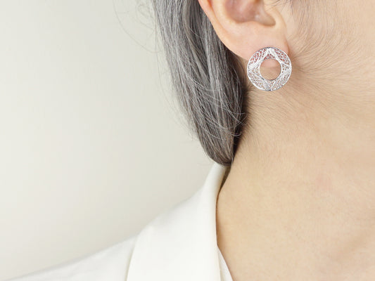 Boucles d'Oreilles Cercles Moyennes, Filigrane Portugaise, Argent 925 Rodié