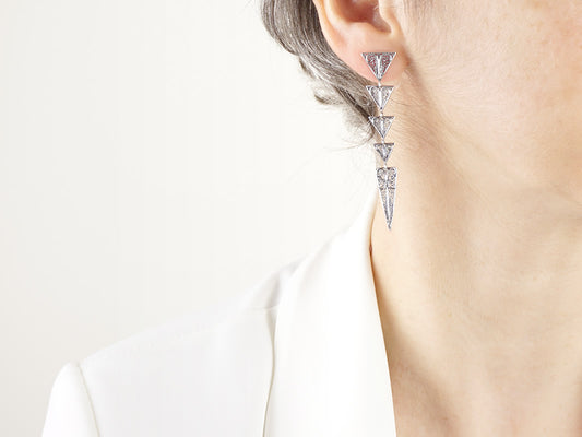 Boucles d'Oreilles Longues aux Triangles, Filigrane Portugaise, Argent 925