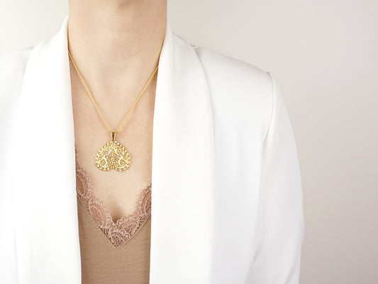 Collier au Cœur Inversé, Filigrane Portugaise, Argent 925 Doré