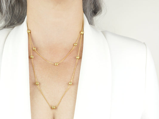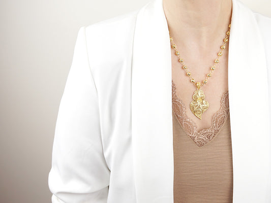 Sautoir aux Perles de Viana Petites, Filigrane Portugaise, Argent 925 Doré