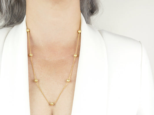 Collier Six Petites Perles de Viana, Filigrane Portugaise, Argent 925 Doré