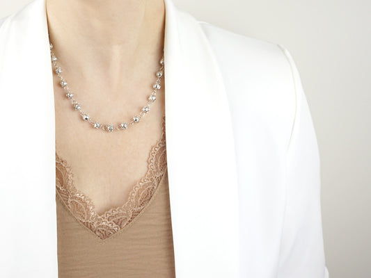 Collier aux Perles de Viana Petites, Filigrane Portugaise, Argent 925 Rhodié