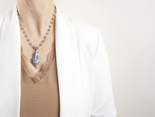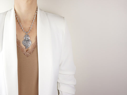 Collier Perles de Viana avec Coeur de Viana Grande, Filigrane Portugaise, Argent 925