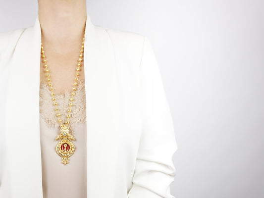 Collier Perles de Viana avec Reliquaire / Sanctuaire Grande, Filigrane Portugaise, Argent 925 Doré