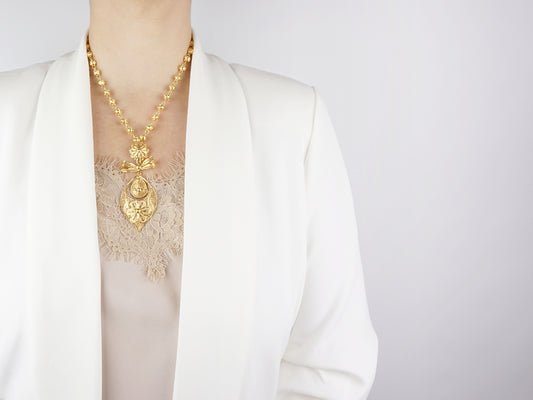 Collier aux Perles de Viana et Médaille Princesse Riche, Filigrane Portugaise, Argent 925 Doré