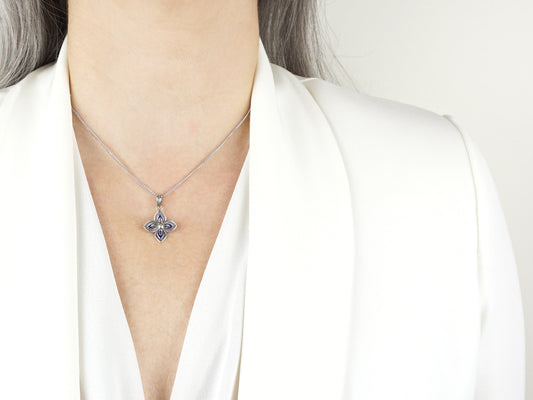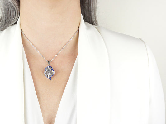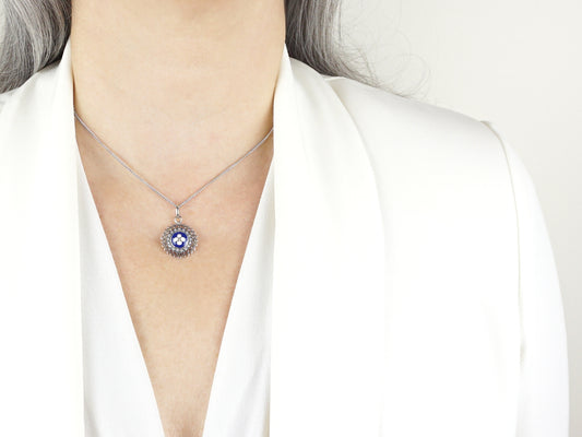 Collier Fleur Classique Émaillé en Bleu, Filigrane Portugaise, Argent 925