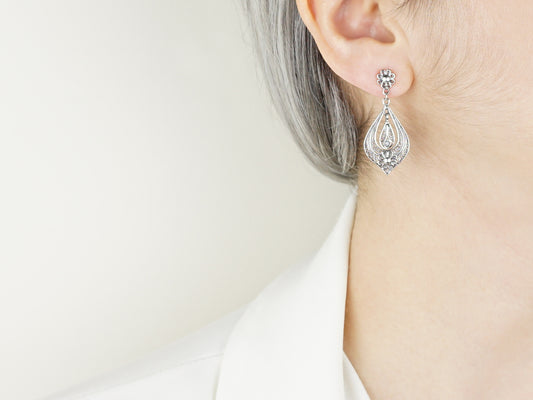 Boucles d’Oreilles Gouttes Riches Moyennes, Filigrane Portugaise, Argent 925