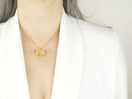 Collier avec Riche Fleur à Six Pétales, Filigrane Portugais, Argent 925 Doré