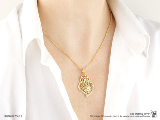 Collier au Coeur Fidalga, Filigrane Portugaise, Argent 925 Doré