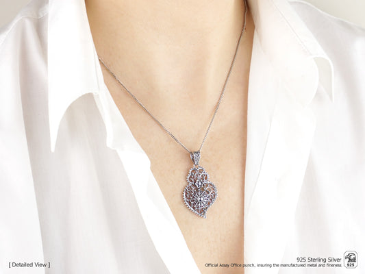 Collier avec Riche Fleur à Six Pétales, Filigrane Portugais, Argent 925