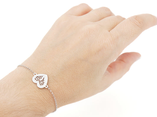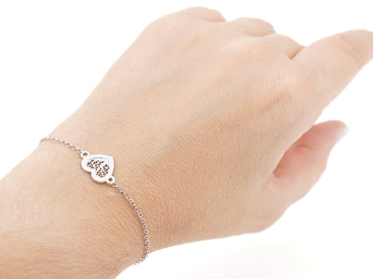 Bracelet au Petit Coeur Émail Blanc, Filigrane Portugaise, Argent 925 Rhodié