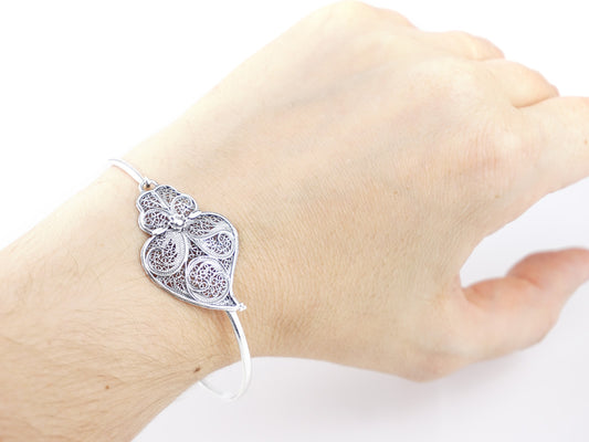 Bracelet Coeur de Viana, Filigrane Portugaise, Argent 925