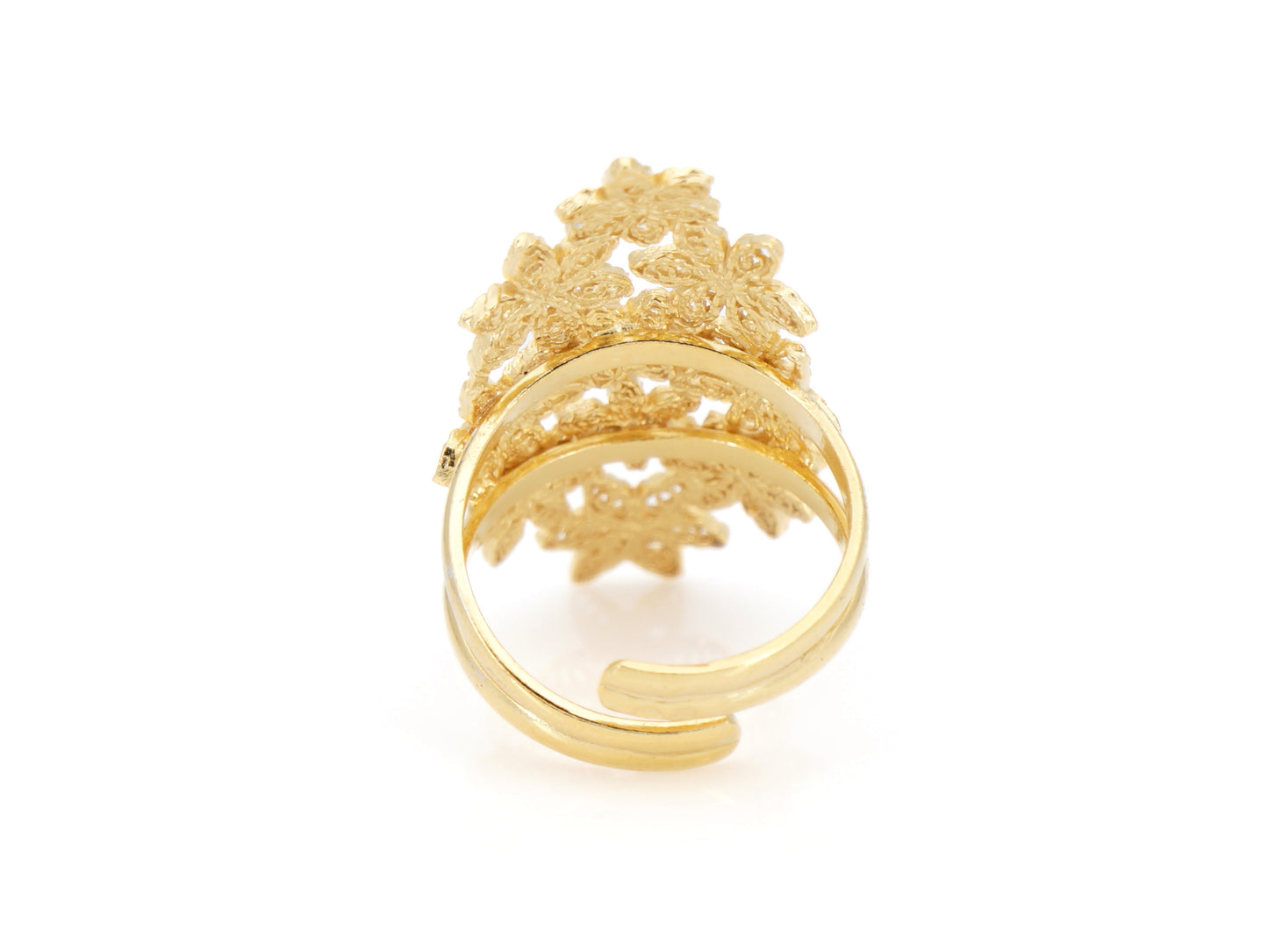 Bague Réglable aux Petites Fleurs, Filigrane Portugaise, Argent 925 Doré