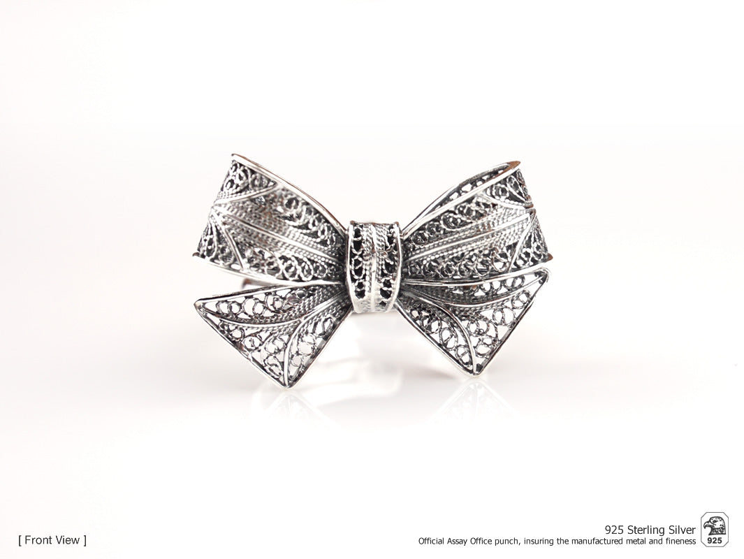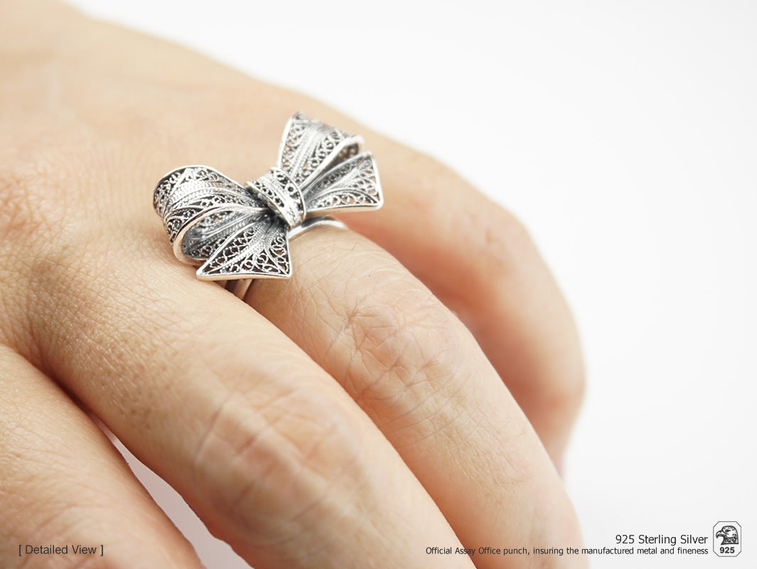 Élégante Bague Grand Noeud, taille réglable. Filigrane Portugaise, fabriqué au Portugal en Argent 925.