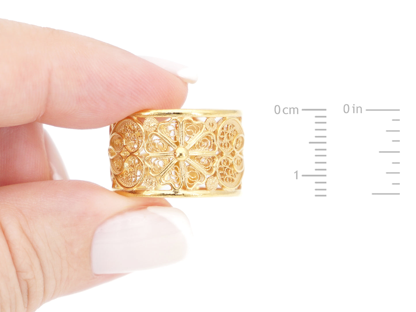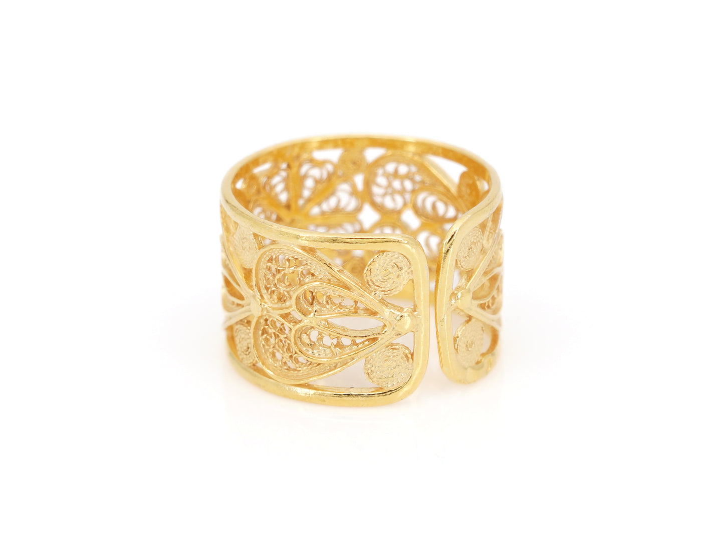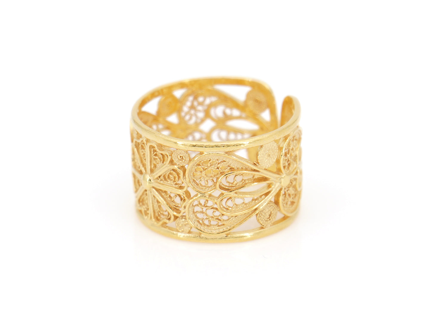 Élégante Bague Large de taille réglable. Filigrane Portugaise, fabriqué au Portugal en Argent 925 Doré.