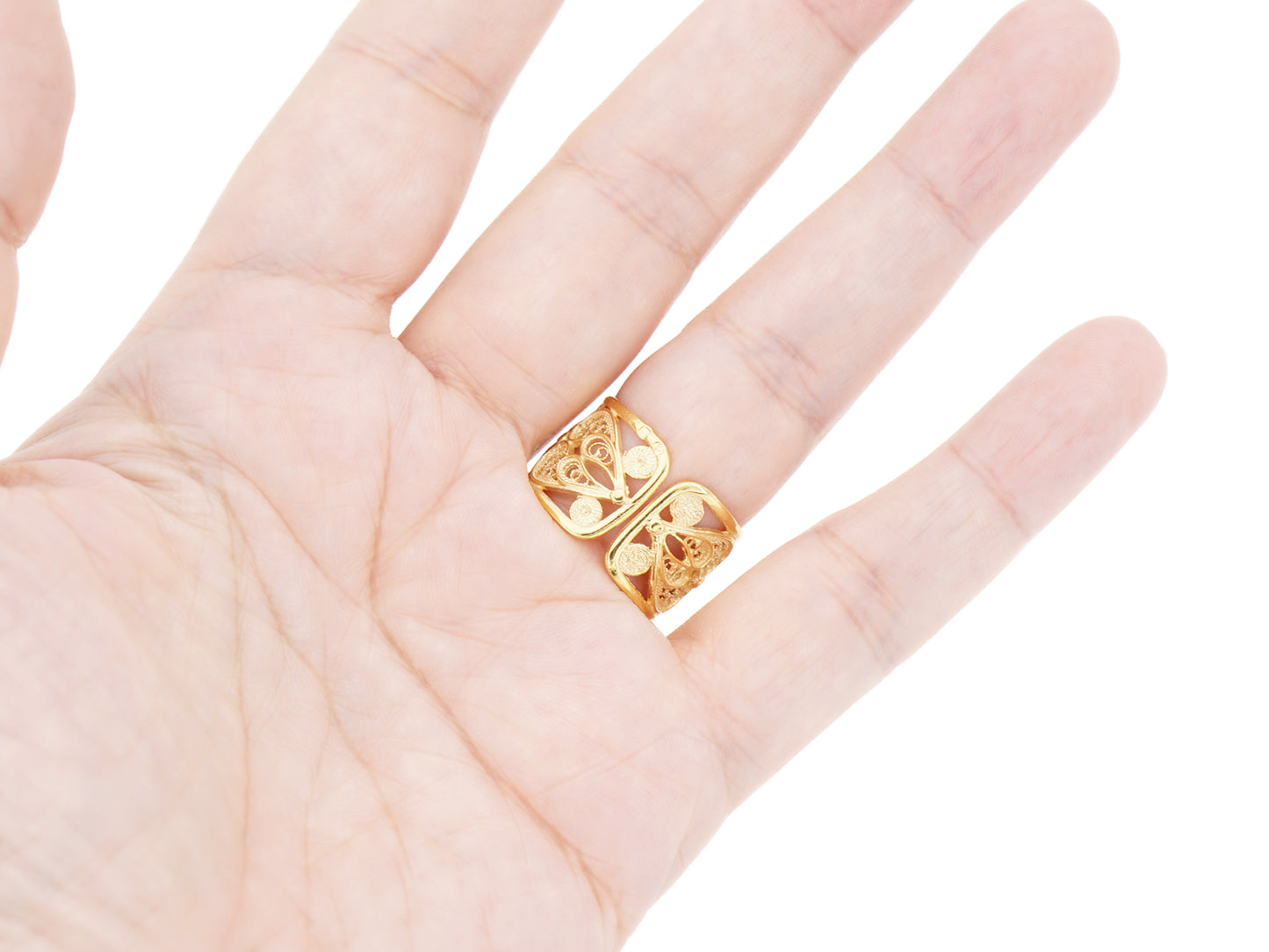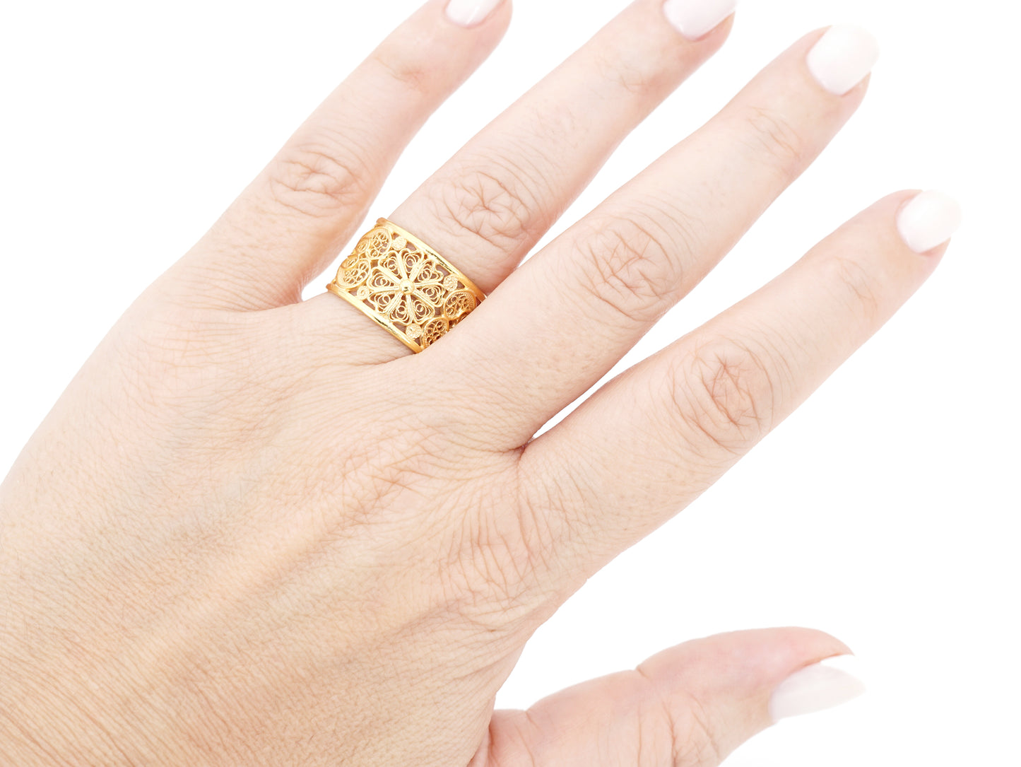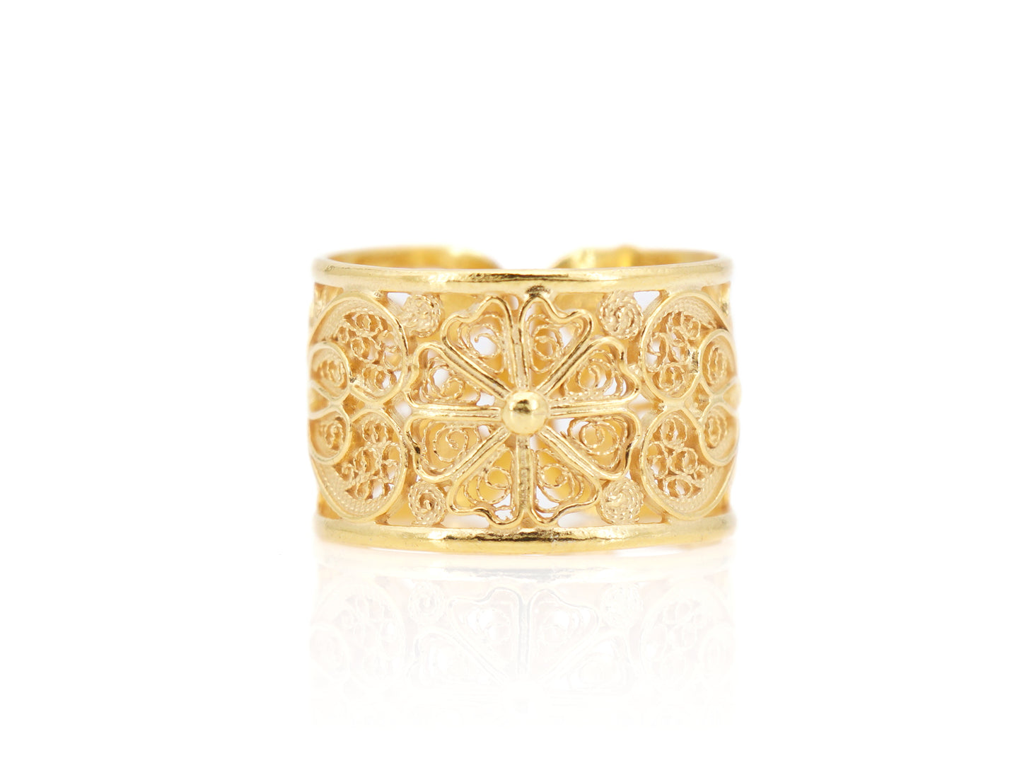 Élégante Bague Large de taille réglable. Filigrane Portugaise, fabriqué au Portugal en Argent 925 Doré.