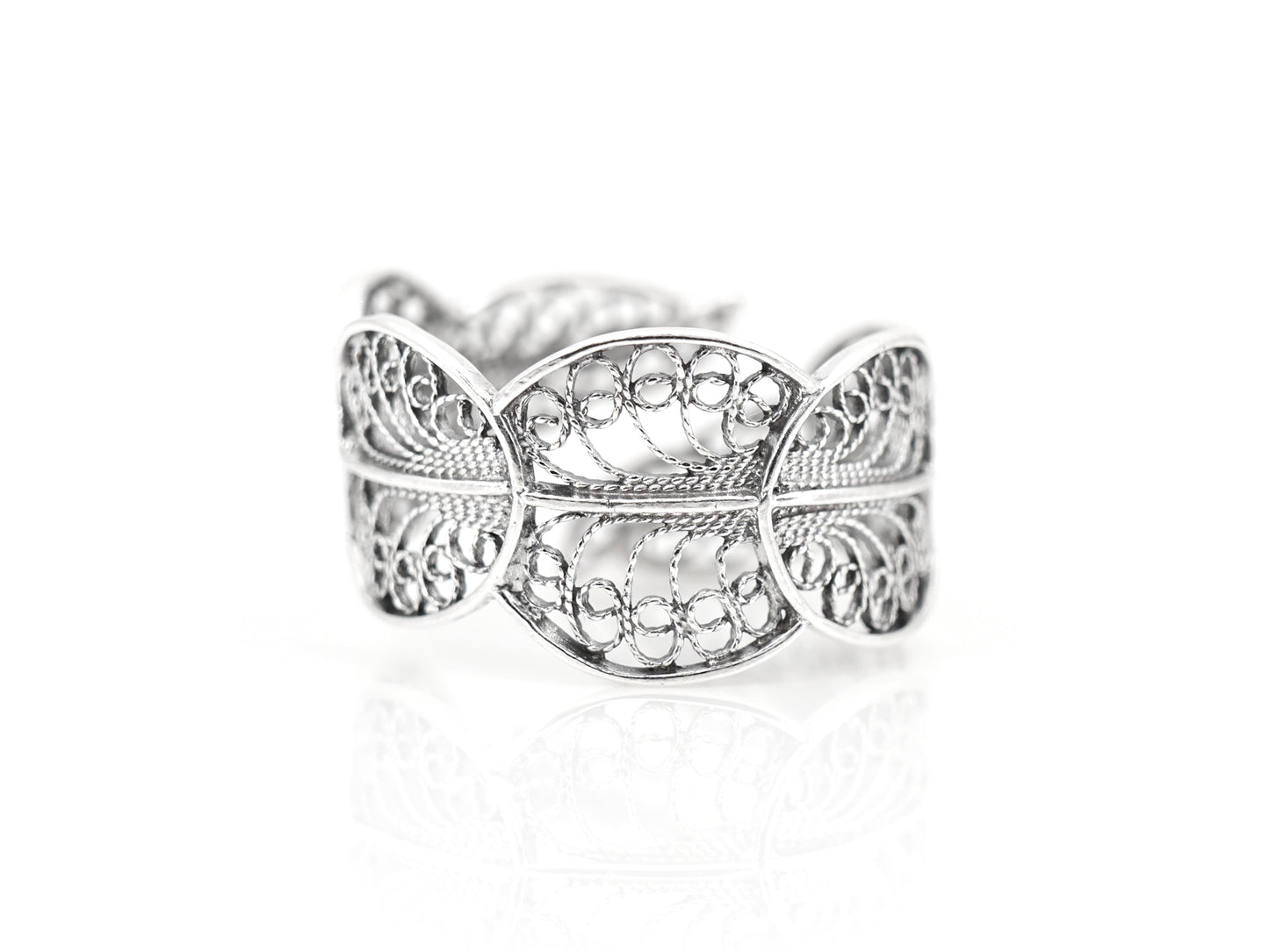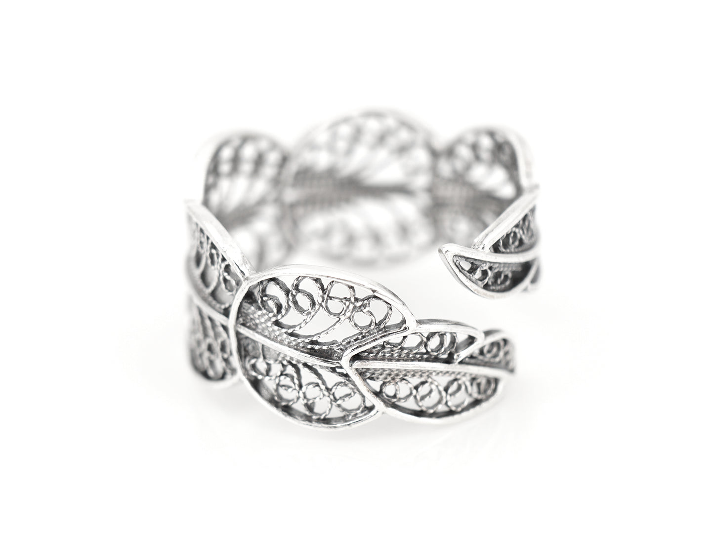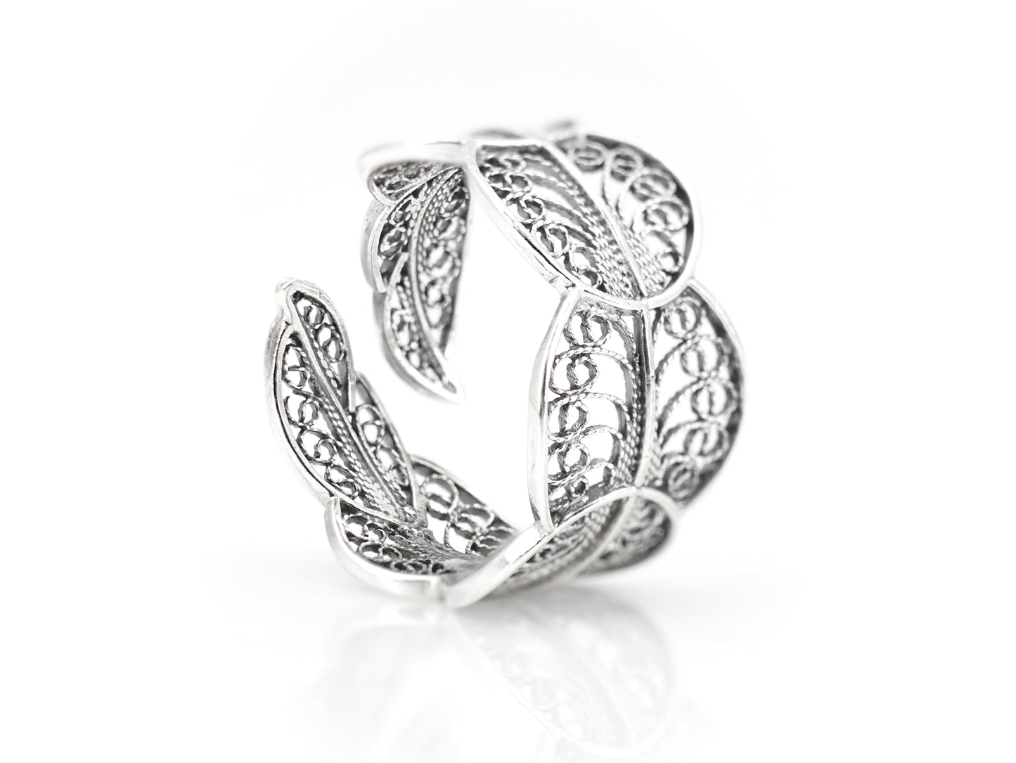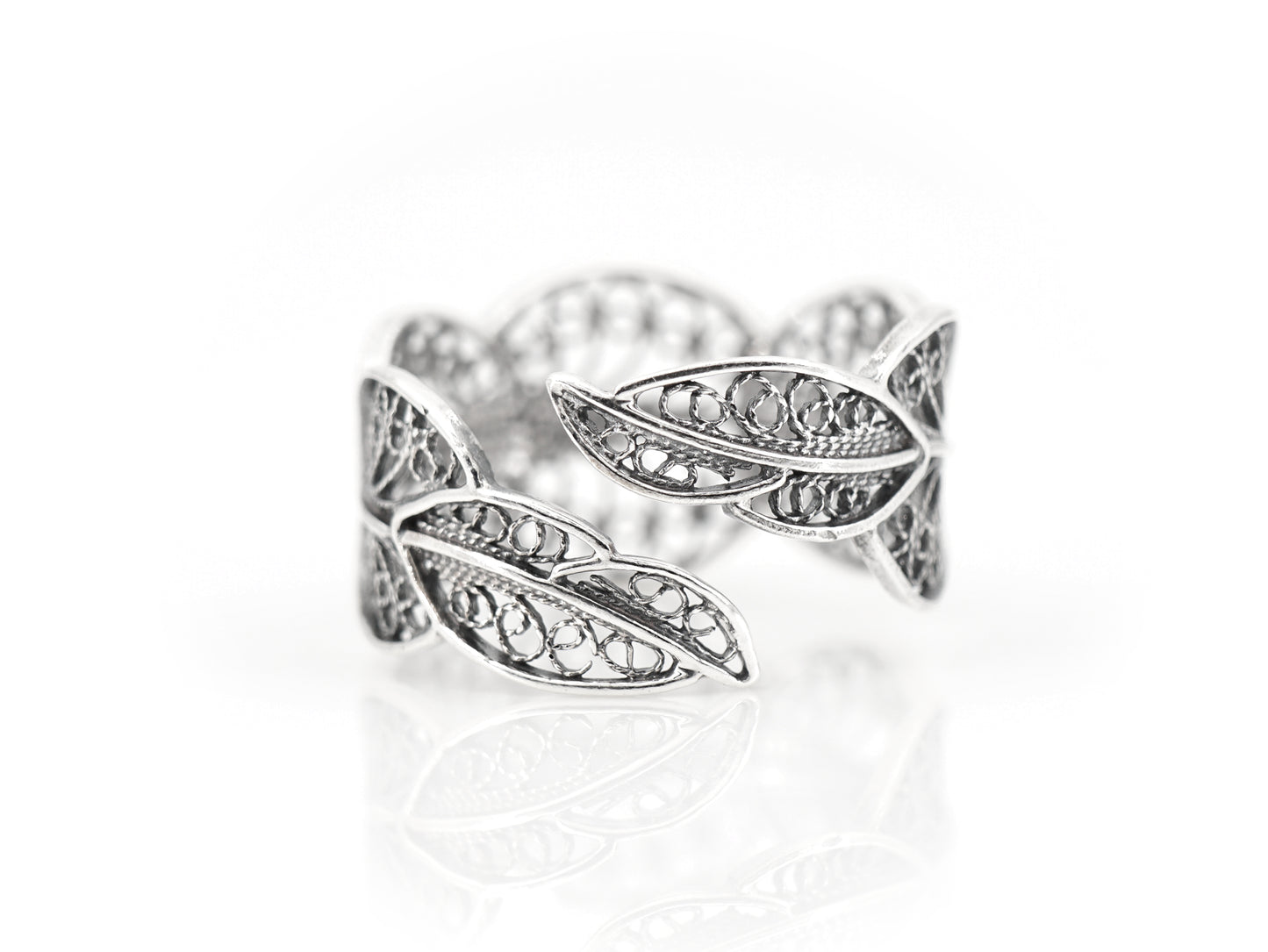 Élégante Bague réglable "Feuilles et Cercles". Filigrane Portugaise, fabriqué au Portugal en Argent 925.