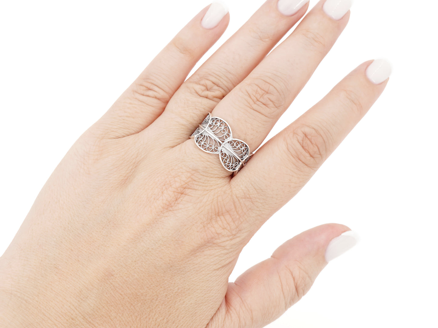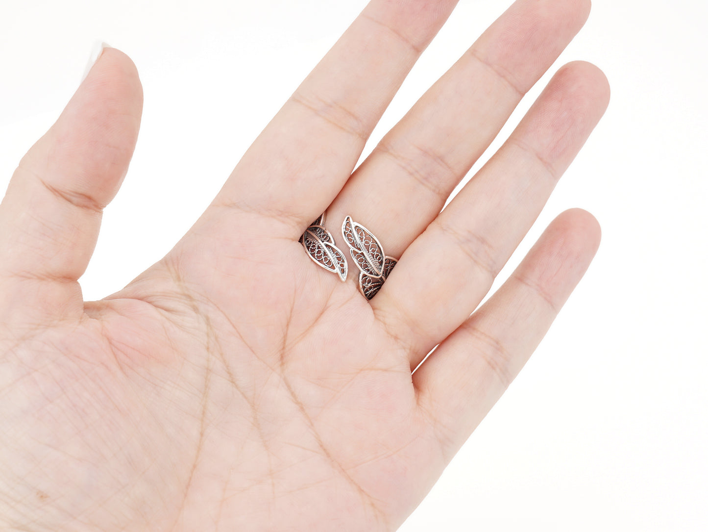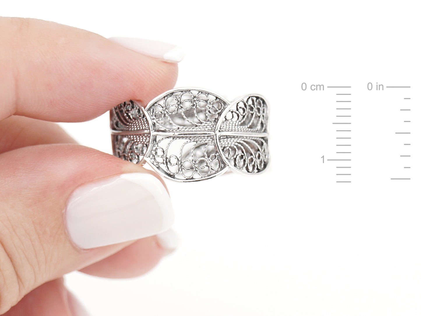 Bague Réglable Feuilles et Cercles, Filigrane Portugaise, Argent 925