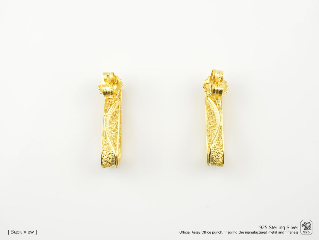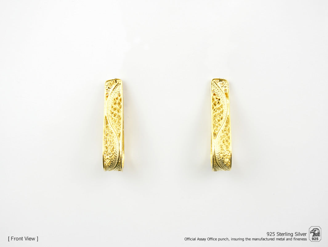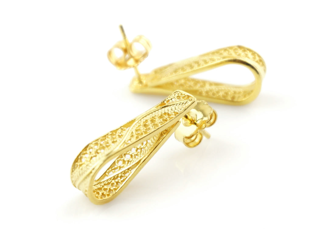 Petites Boucles D'Oreilles Pliées, Filigrane Portugaise, Argent 925 Doré
