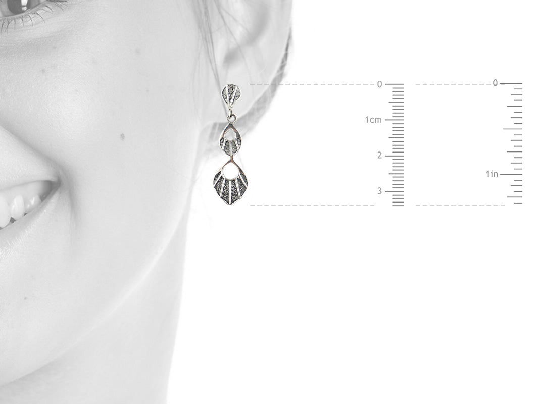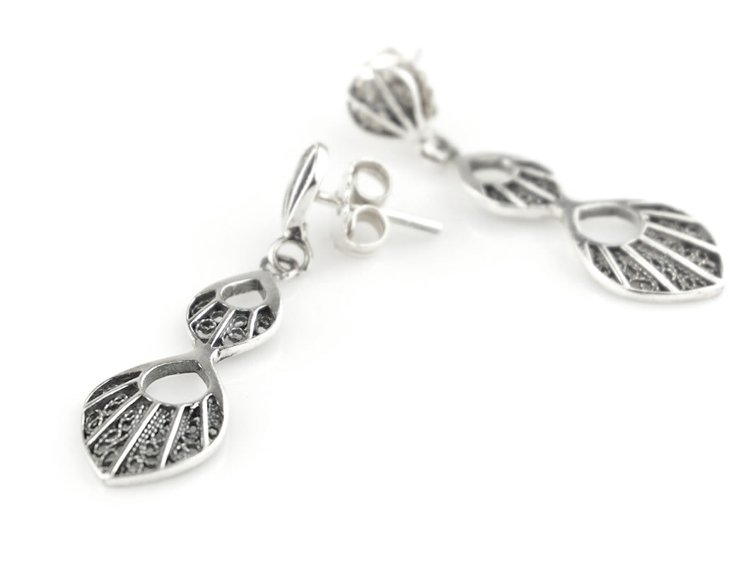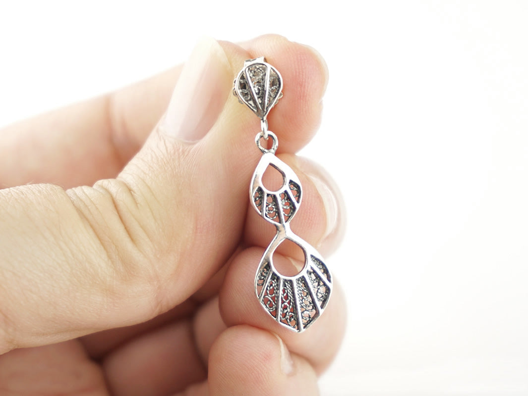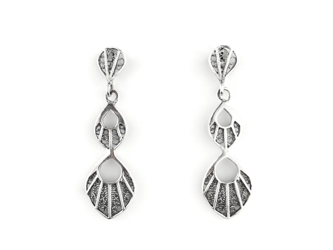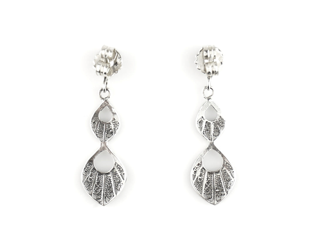 Boucles d'Oreilles Gouttelettes Pendantes, Filigrane Portugaise, Argent 925