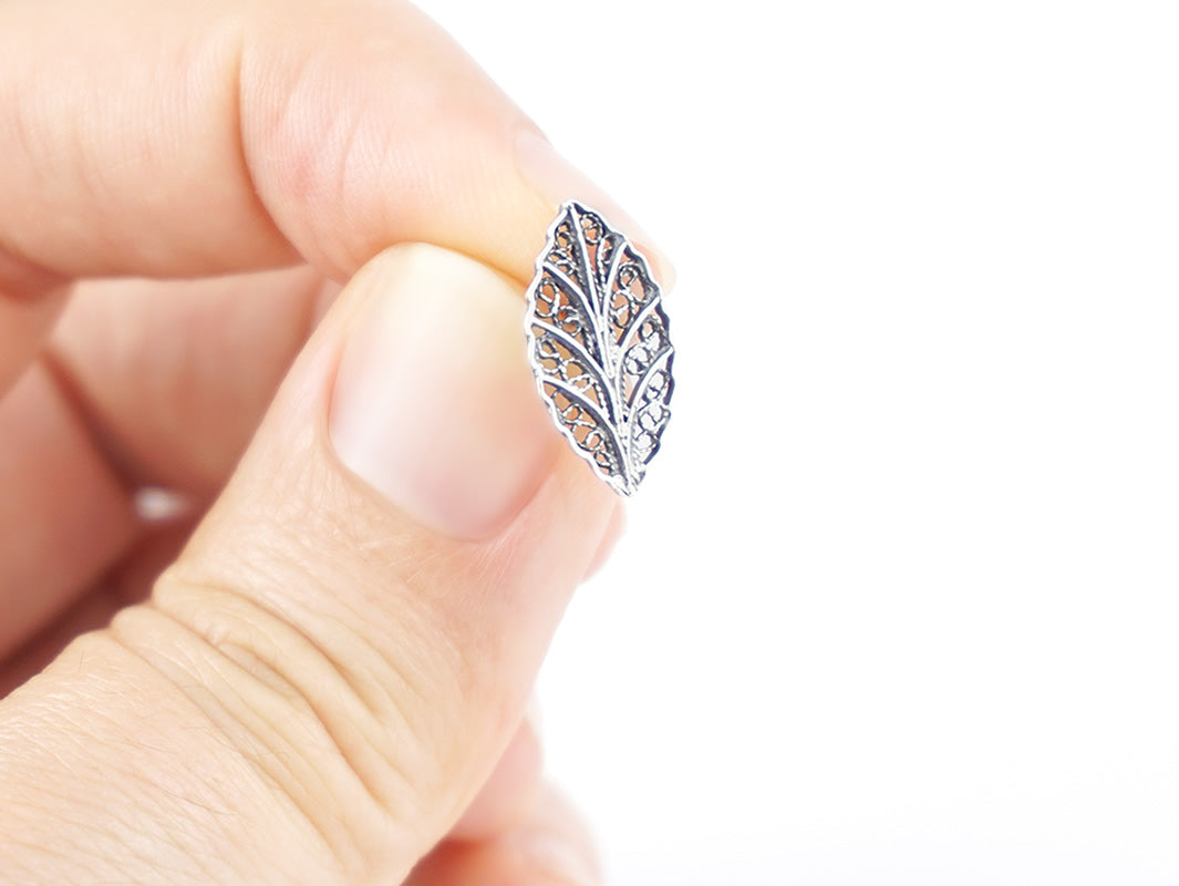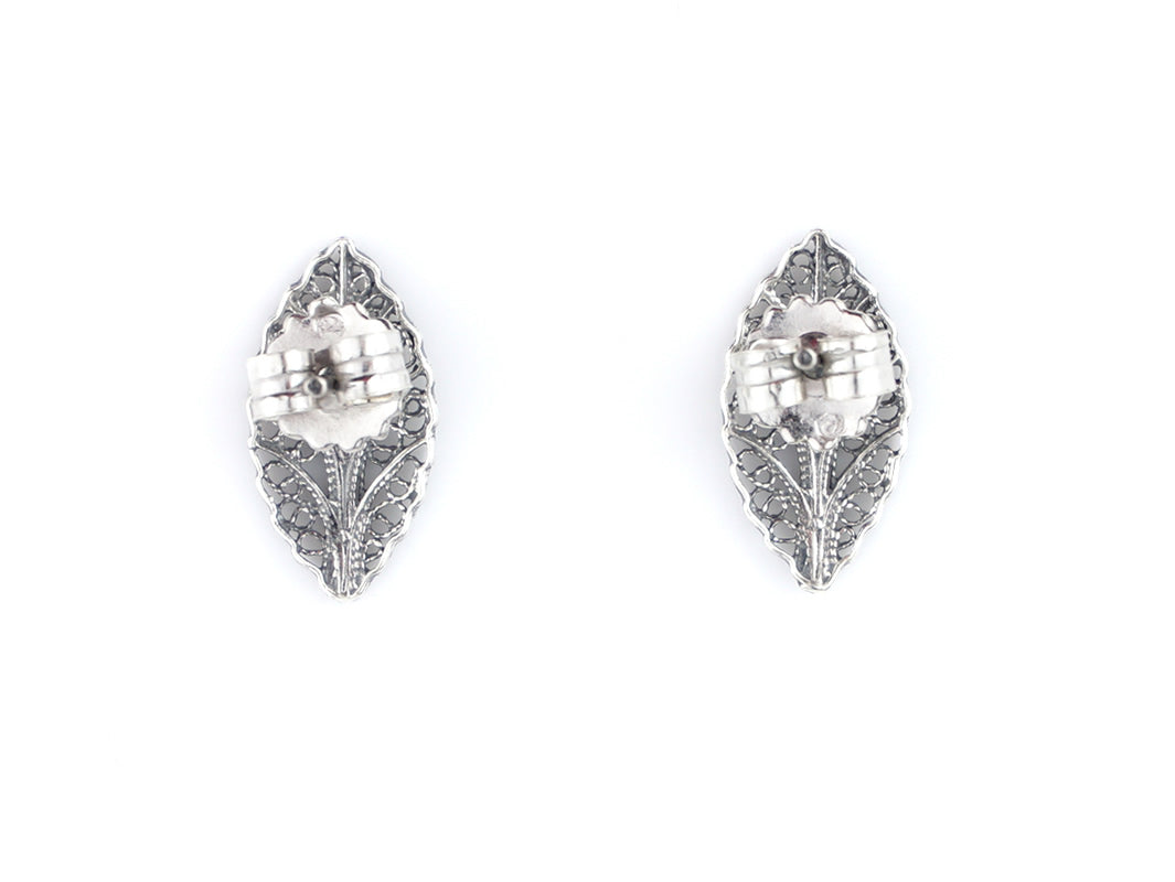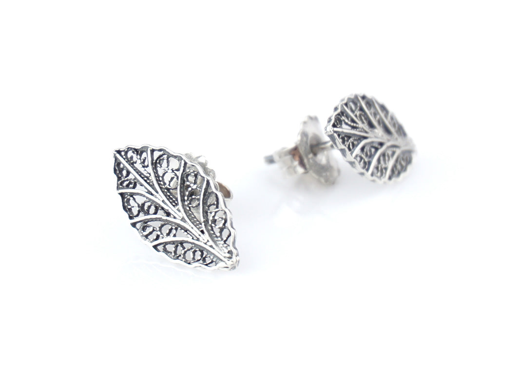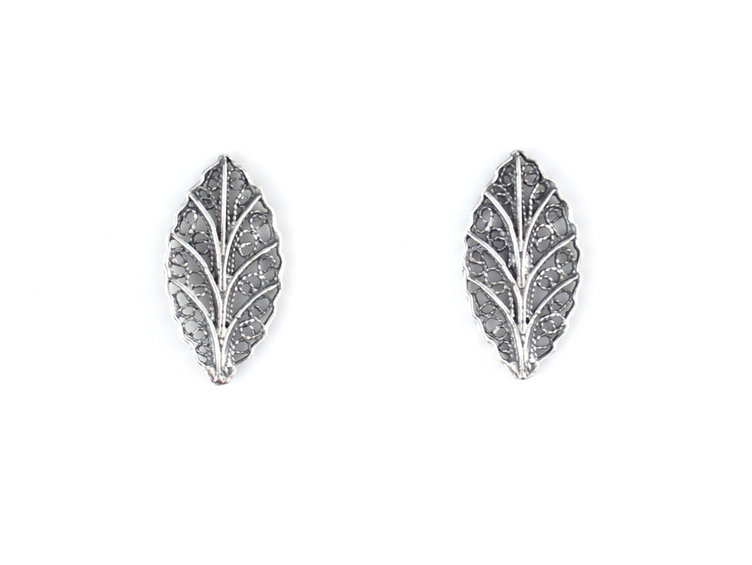 Boucles d'Oreilles Petites Feuilles, Filigrane Portugaise, Argent 925