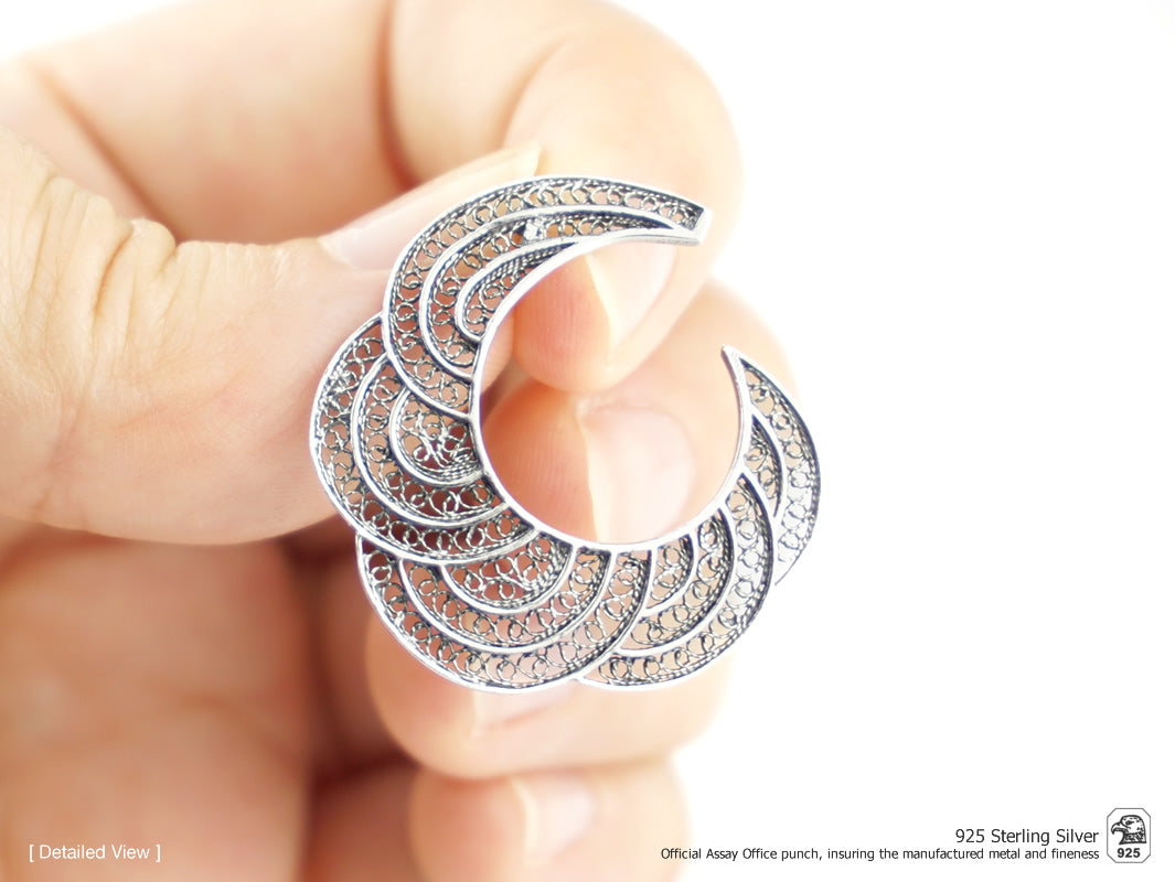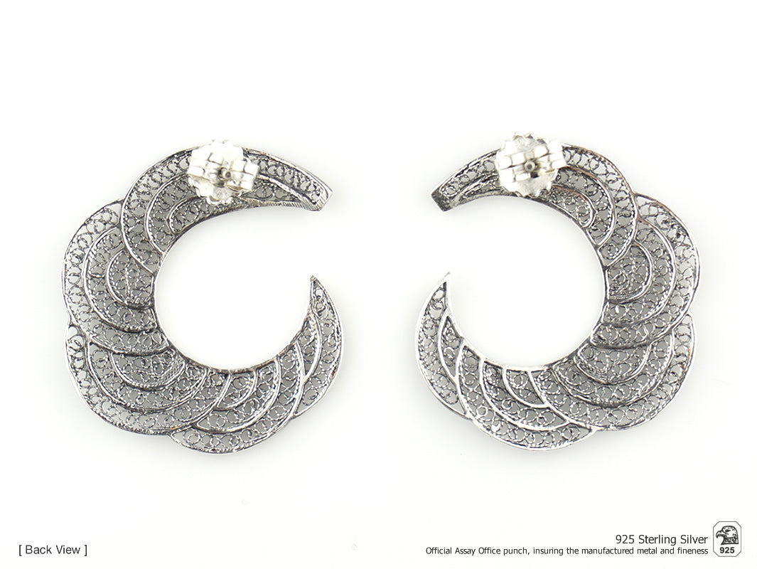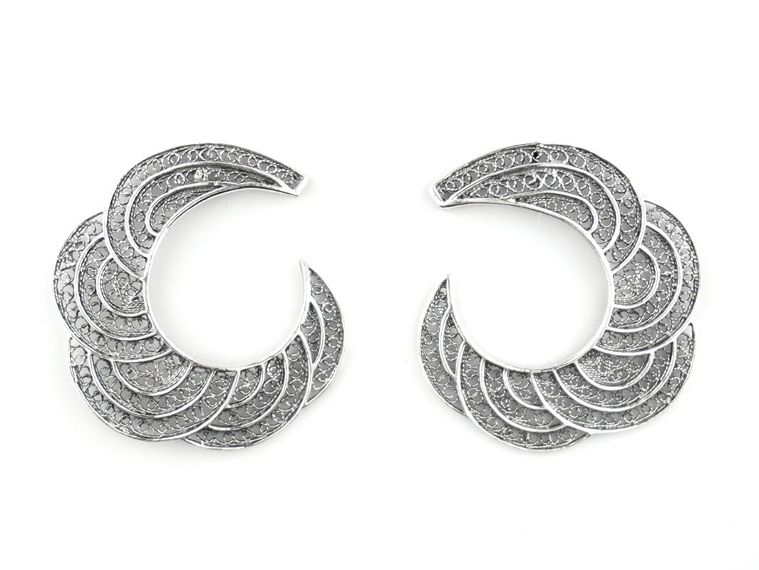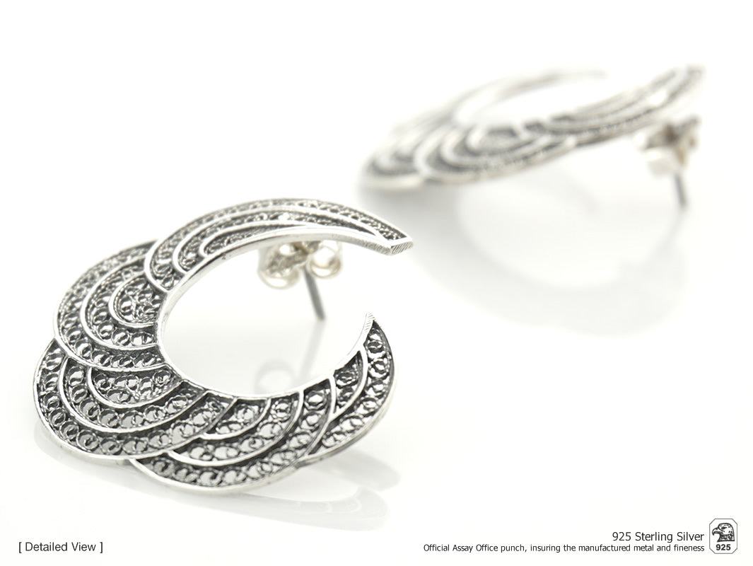 Boucles D’Oreilles Couronne Ouverte aux Circles, Filigrane Portugaise, Argent 925