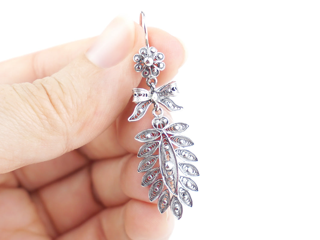 Boucles d'Oreilles Alma, Filigrane Portugaise, Argent 925