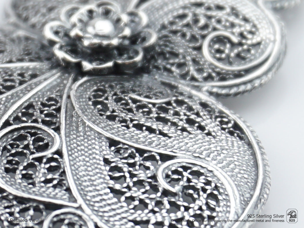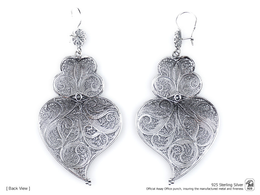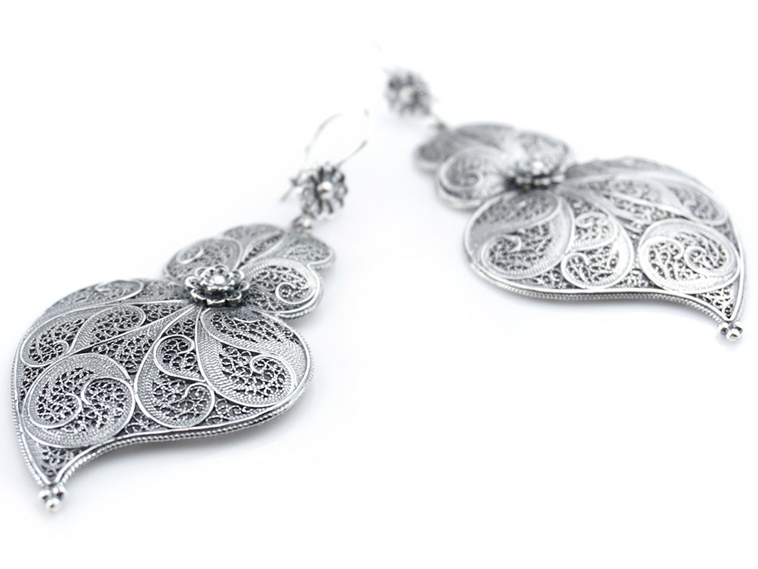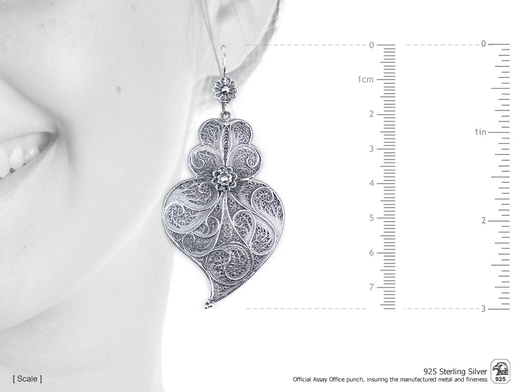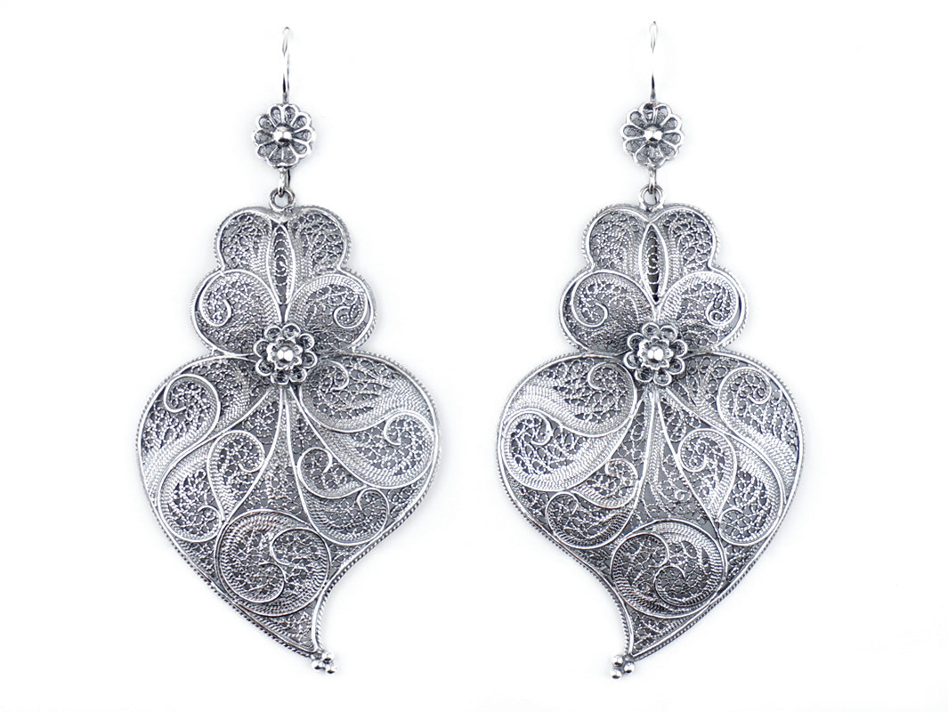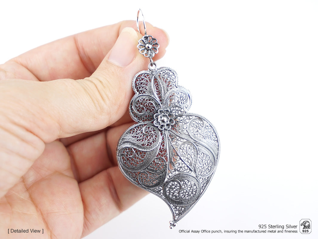 Boucles d'Oreilles Coeur de Viana Taille XL, Filigrane Portugaise, Argent 925