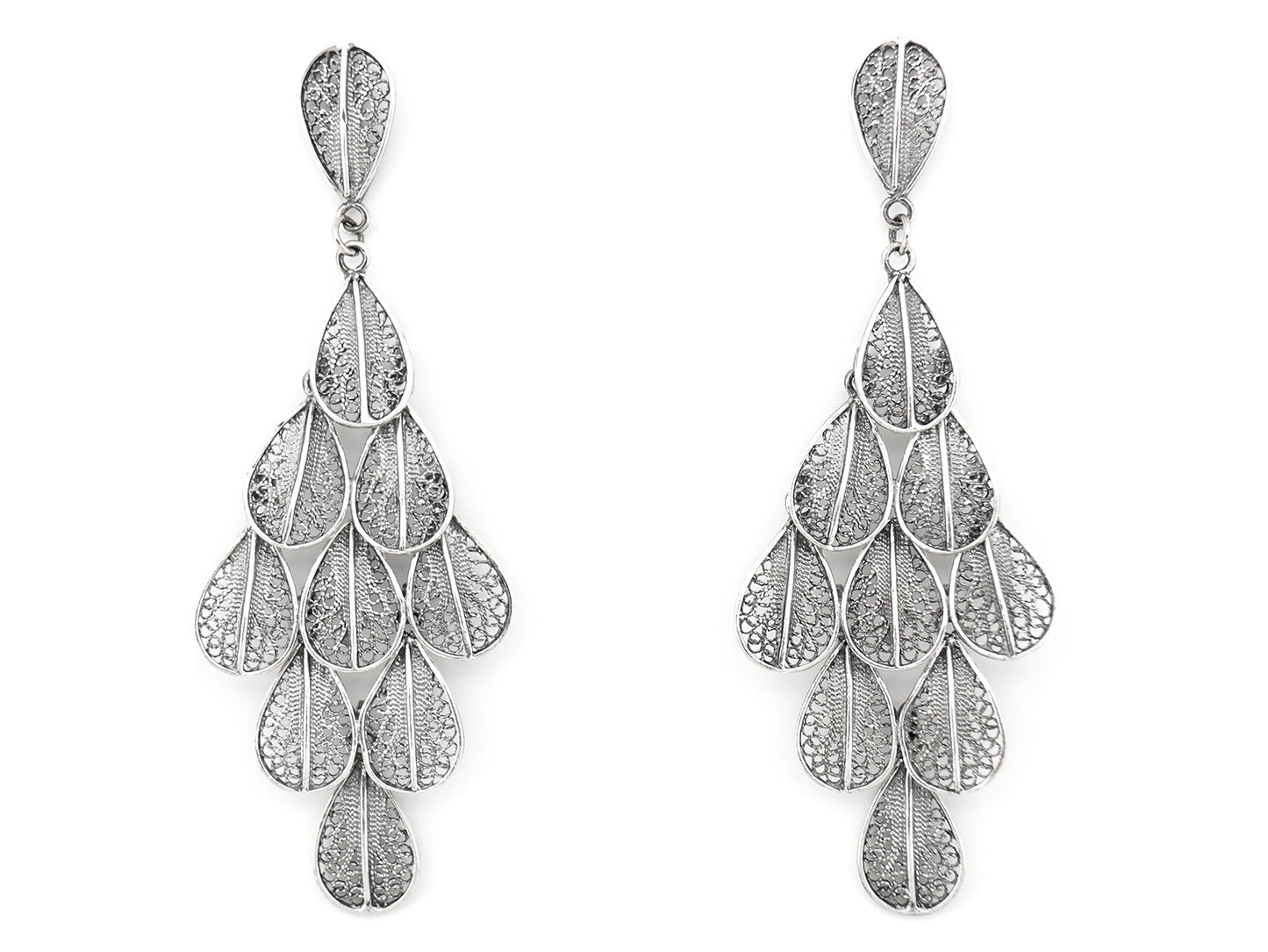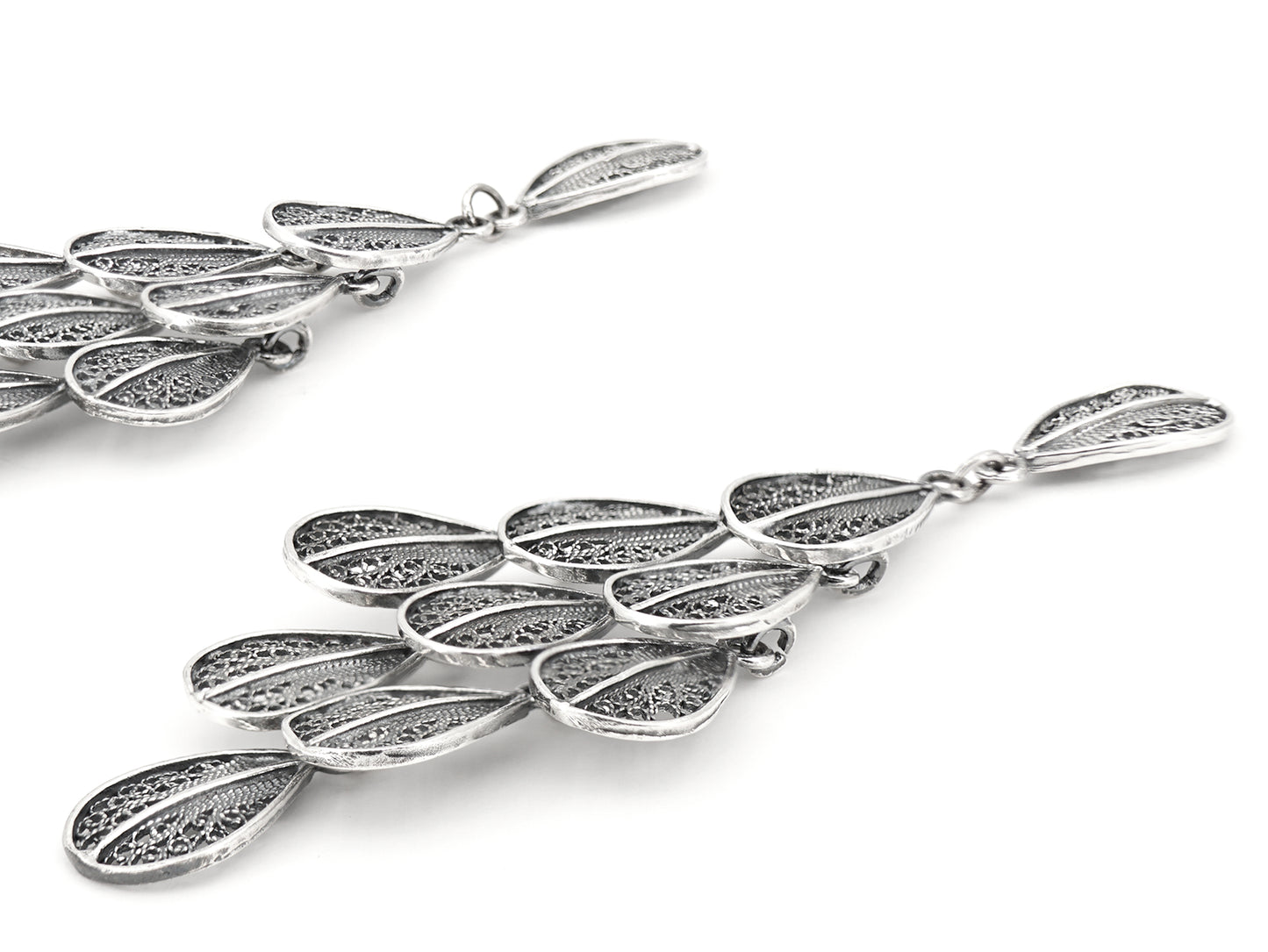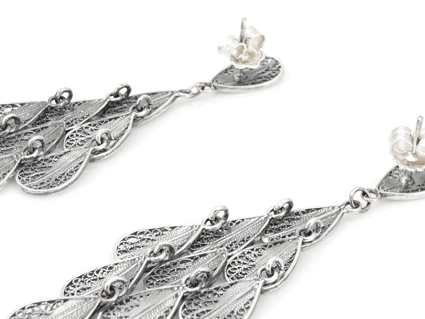 Boucles D'Oreilles Gouttes Articulées, Filigrane Portugaise, Argent 925