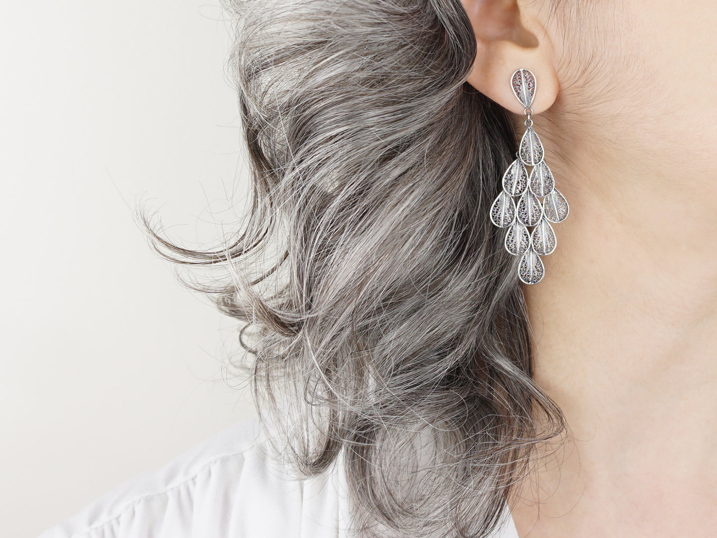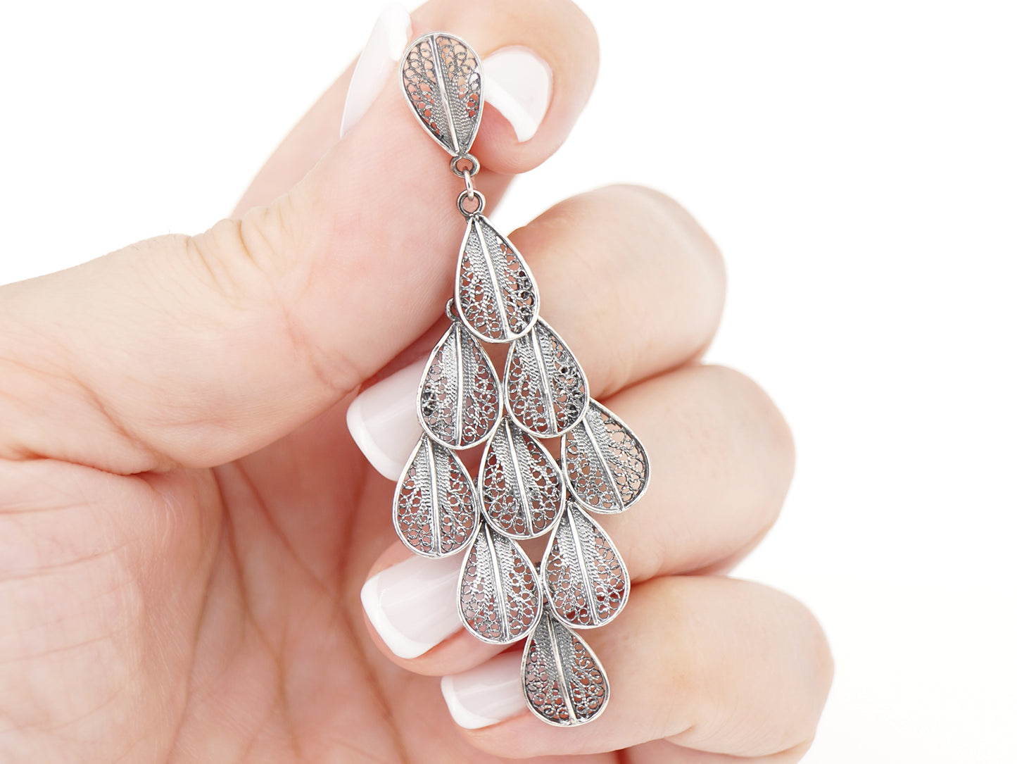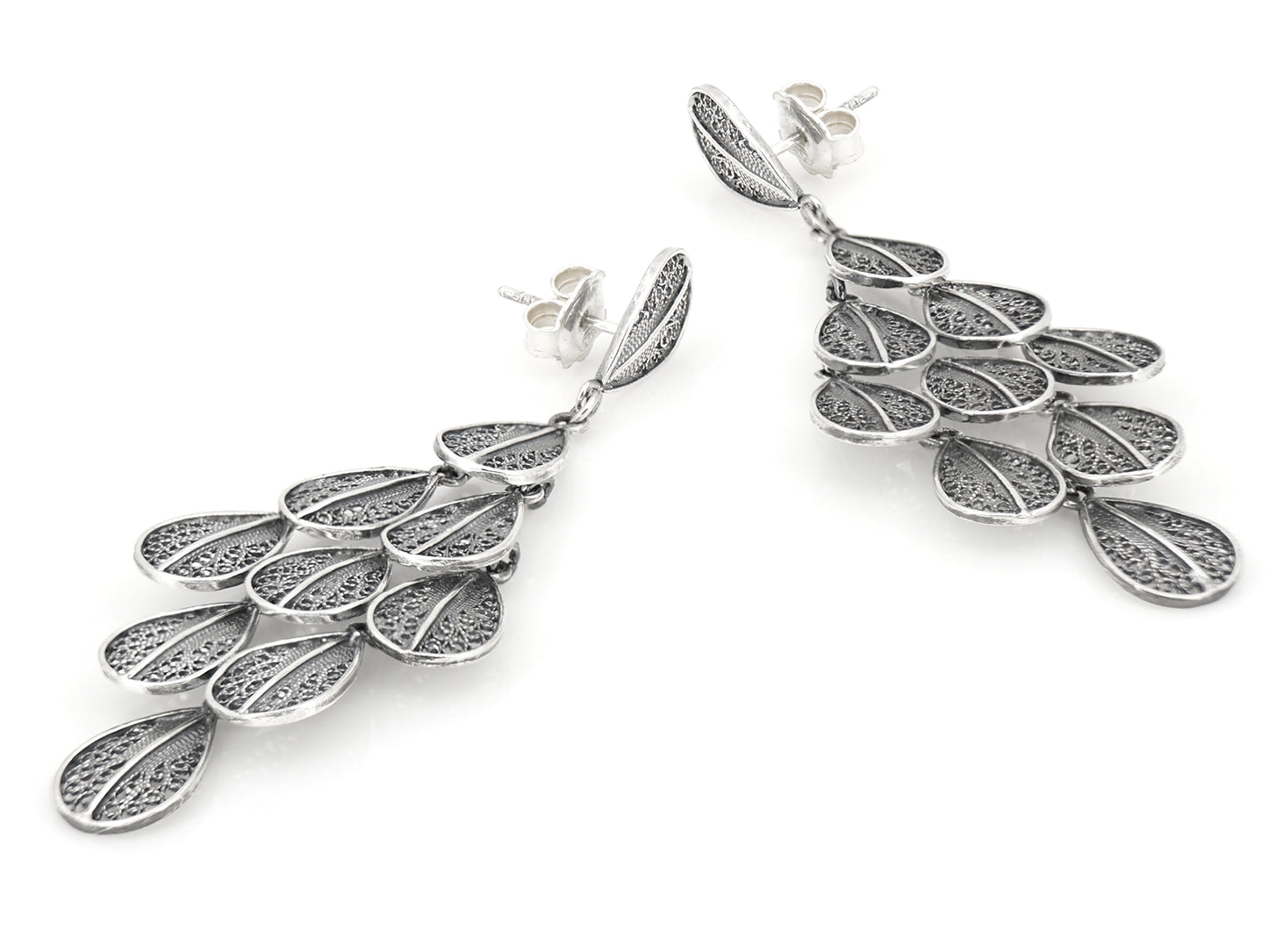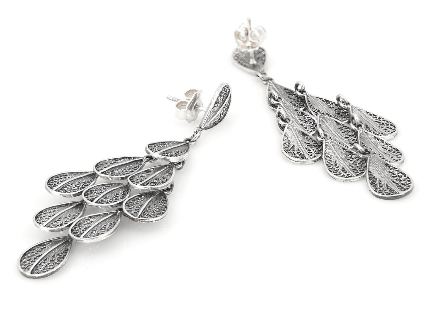 Boucles D'Oreilles Gouttes Articulées, Filigrane Portugaise, Argent 925
